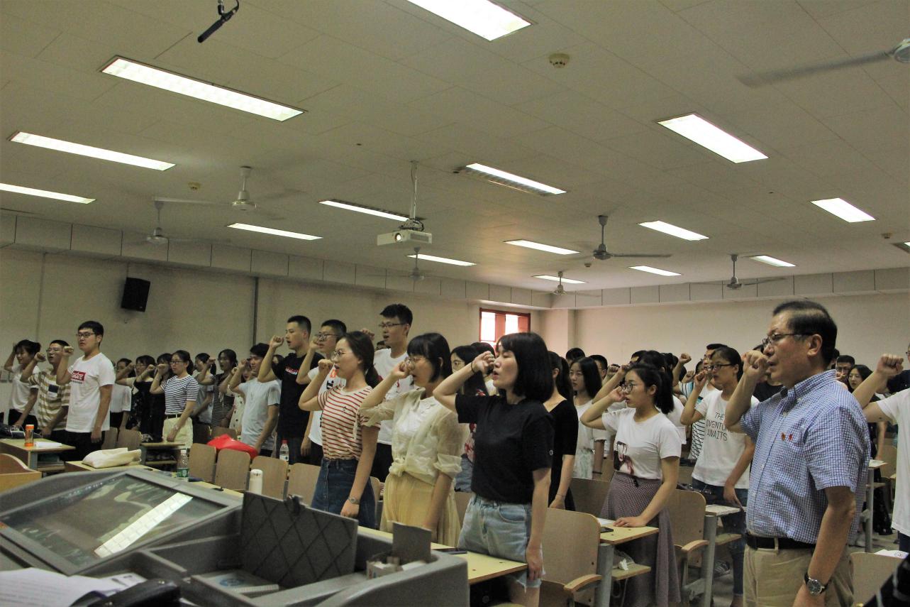活动伊始,全体毕业生党员面向党旗,庄严宣誓,重温入党誓词。