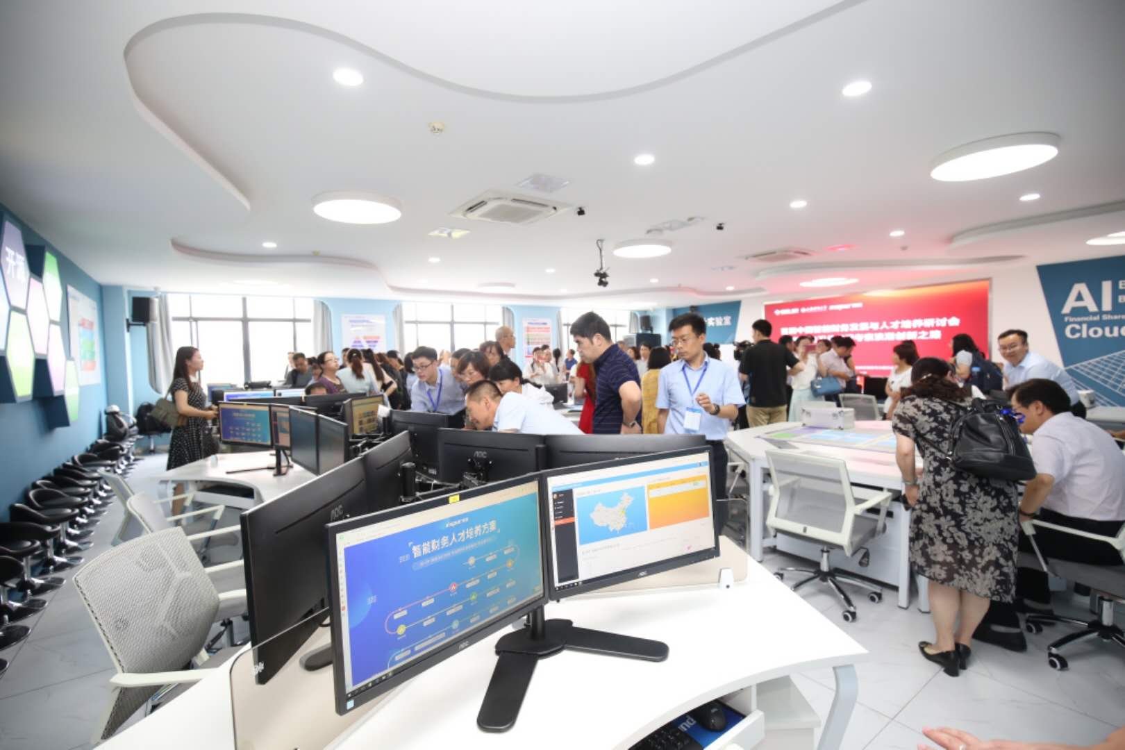 会上,浪潮集团与bat365官方官网合作共建的“智能会计”实验室正式揭牌。与会嘉宾对企业的财务转型思路和高校人才培养代表进行了报告,并参观浪潮服务器智能工厂和刚刚建成的智能会计实验室。