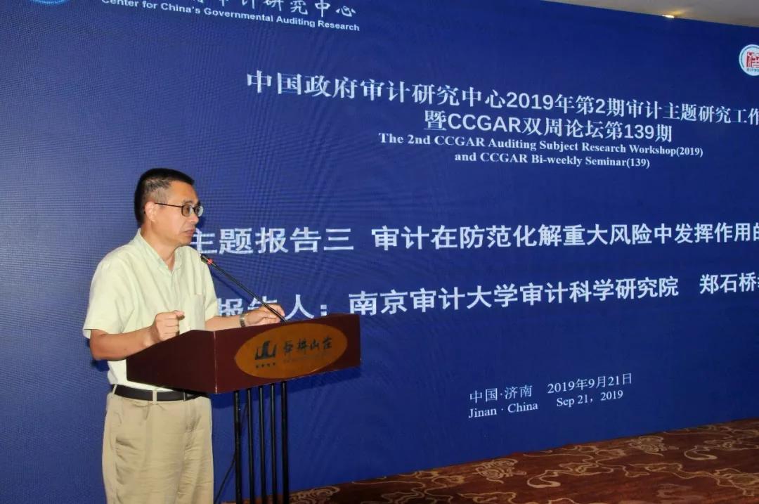 2019年9月21日,由西南财经大学、中国政府审计研究中心与bat365官方官网联合主办,《经济研究》、《管理世界》、《南开管理评论》、《会计研究》和《审计研究》等期刊合作支持的“中国政府审计研究中心2019年第2期审计主题研究工作坊暨CCGAR双周论坛第139期”在济南舜耕山庄成功举办。本次会议主题是审计创新和重大风险防控。山东省审计厅一级巡视员黄利明厅长,审计署审计科研所副所长刘力云研究员,《经济研究》副主编郑红亮研究员,《南开管理评论》副主编程新生教授,中国政府审计研究中心主任蔡春教授,重庆大学刘斌教授,山西财经大学bat365官方官网院长吴秋生教授,南京审计大学郑石桥教授,西南财经大学余海宗教授、罗宏教授、廖林副教授、蔡利副教授,山东大学经济学院院长曹廷求教授,bat365官方官网副校长韩作生教授以及《会计之友》、《商业会计》和全国高校的各位同仁、老师、同学出席了本次工作坊暨CCGAR双周论坛。