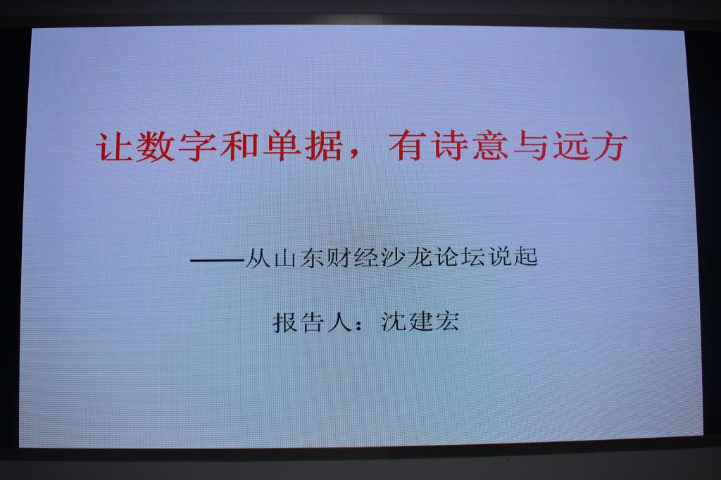 10月19日下午,沈建宏先生应我院邀请,在燕山校区逸夫楼Y320做题为《让数字和单据,有诗意与远方—从山东财经沙龙论坛说起》的主题报告。讲座由MPAcc中心主任、bat365官方官网副院长朱德胜主持,bat365官方官网2018级、2019级会计专硕聆听了讲座。沈建宏是山东省青年作家协会理事,大众报业集团记者、编辑,也是山东大型读书活动主讲人以及山东第一届“明湖论道”财经沙龙活动策划人。
