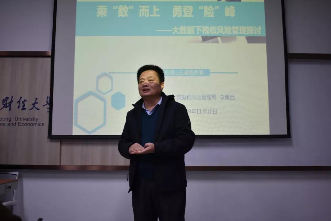 11月16日下午,李崇西教授应我院邀请,在逸夫楼Y307作题为《乘“数”而上,勇登“险”峰——大数据下的税收风险管理》的学术报告。讲座由MPAcc中心主任、bat365官方官网副院长朱德胜主持,bat365官方官网部分老师及硕士研究生到场聆听。