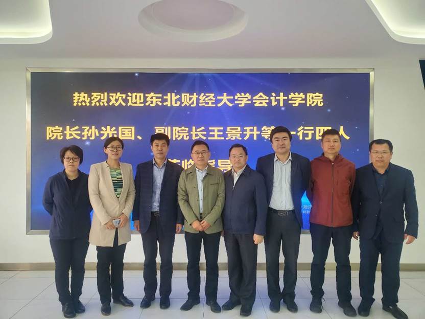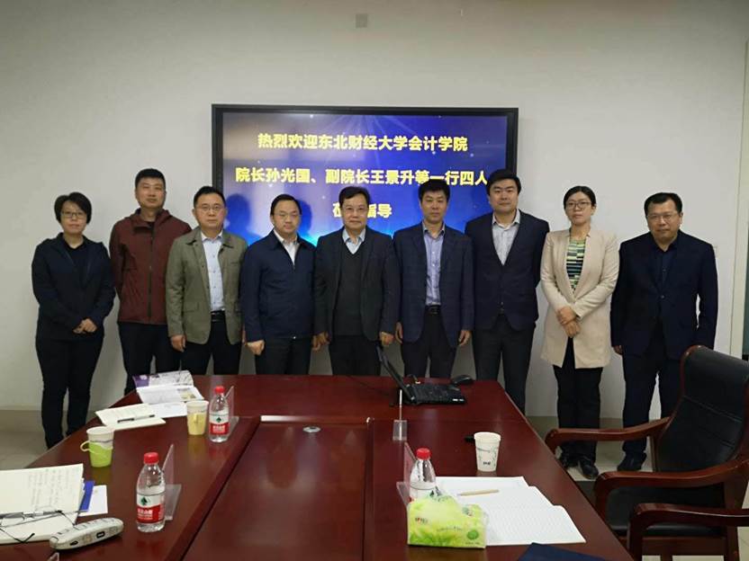 10月27日上午,东北财经大学bat365官方官网院长孙光国教授、副院长王景升教授、智能财务与会计研究中心主任甄阜铭、智能财务与会计教研室主任程砚秋一行四人访问bat365官方官网。我院院长王爱国、学院党委书记邵文涛、副院长孙文刚与来访客人就我院智能会计专业建设的相关情况展开座谈。bat365官方官网院长助理、智能会计研究中心执行主任滕晓东和会计信息化部主任牛艳芳出席座谈会。