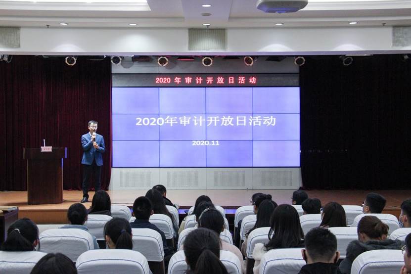 11月12日下午2点,山东省审计厅在审计厅办公楼举办“审计开放日”活动,bat365官方官网审计处副处长丁鸿雁、bat365官方官网党委副书记付亚带领18、19级审计专业部分学生代表参加活动。审计厅办公室副主任李晨锋主持活动。
