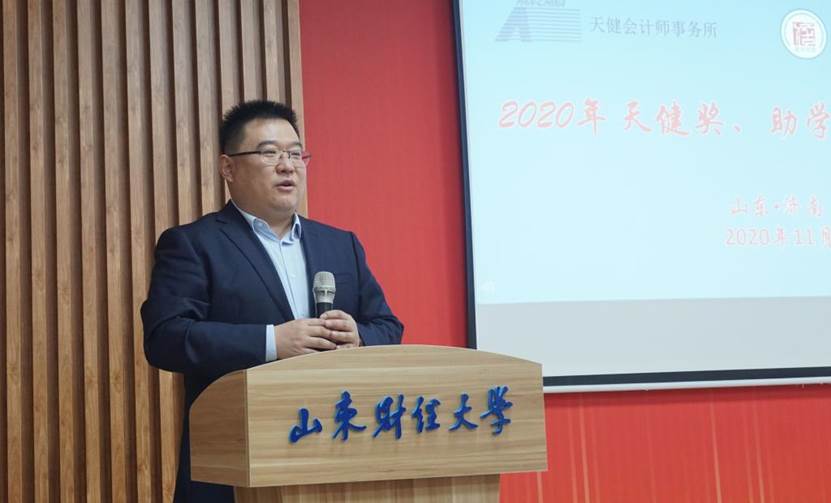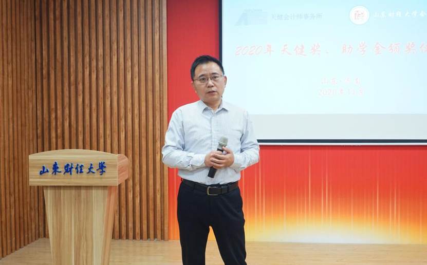 11月13日下午,2020年度天健奖(助)学金颁奖仪式在bat365官方官网燕山校区举行。天健会计师事务所高级合伙人、山东分所总经理刘加宝,山东分所高级经理康宁、人力资源部经理宋小燕出席,校学工部部长、学生处处长王剑,bat365官方官网党委书记邵文涛,校合作发展处副处长、校友办公室副主任邵伟然,校团委副书记谷学峰,学院党委副书记付亚、辅导员王美春、张沫、张慧娟和学生代表参加颁奖仪式。仪式由付亚主持。
