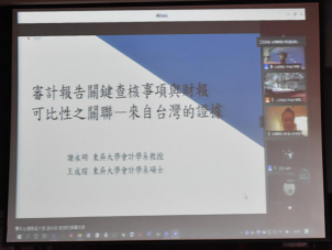 台湾东吴大学会计学系谢永明教授作了题为“审计报告关键查核事项与财报可比性之关联——来自台湾的证据” 的主题报告。他分别从动机与目的、文献回顾、假说与分析模型、实证结果、结论与建议五个方面进行了报告。报告中首先讲了研究动机与目的,一是为了验证关键查核事项金额揭露是否与财报可比性有关联性,二是为了验证关键查核事项之项目数量是否会影响财报可比性。最后报告得出结论,一是当关联查核事项有揭露金额时,财报可比性较差;二是关键查核事项揭露数量对于财报可比性并未有显著影响。最后,谢教授也提出了几点研究建议:一是未来可分析关键查核事项的文字语意,探讨其含义与影响;二是可以针对单一产业进行深入探讨,分析不同产业揭露关键查核事项与其影响是否有所差异;三是未来研究可利用其他衡量可比性之方式进行测试。