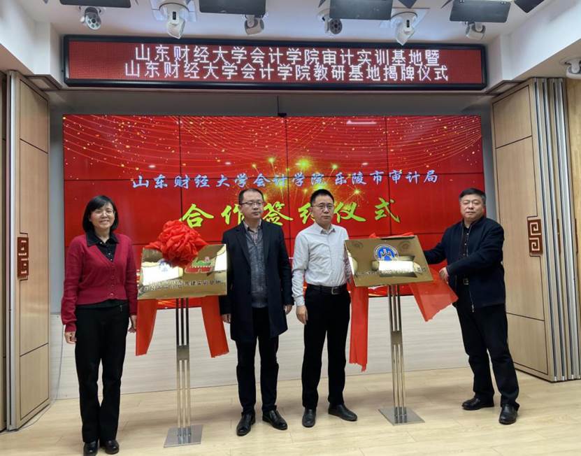 12月18日上午,bat365官方官网与乐陵市审计局实训、教研基地签约揭牌仪式在乐陵市审计局举行。乐陵市市委常委、副市长赵之达,德州市审计局副局长梁富修、乐陵市市委组织部副部长杜志猛,乐陵市审计局局长孟国柱,乐陵市科技局副局长徐梦弟,乐陵市审计局中层以上人员以及bat365官方官网党委书记邵文涛,党委副书记付亚,辅导员孙菁、曹婧等出席,仪式由赵之达主持。