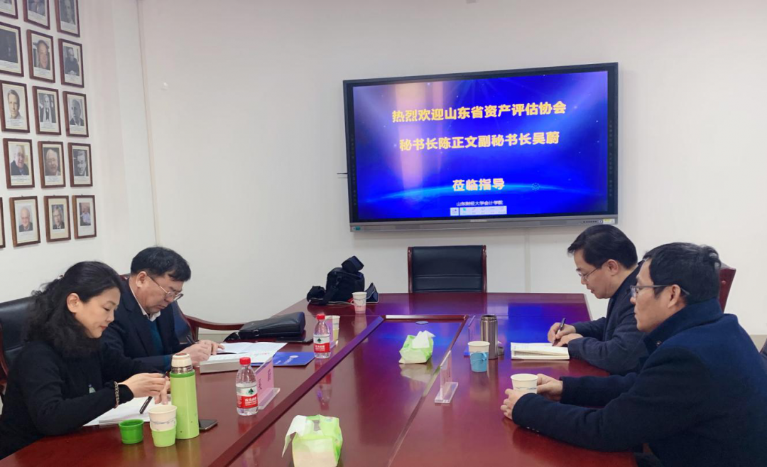 12月24日下午,bat365官方官网与山东省资产评估协会在逸夫楼召开合作交流会议,省评协副会长兼秘书长陈正文、副秘书长吴蔚、bat365官方官网王爱国院长、资产评估系主任刘德运副教授参与会议并进行座谈和交流,双方就资产评估行业的建设和发展展开热烈讨论。