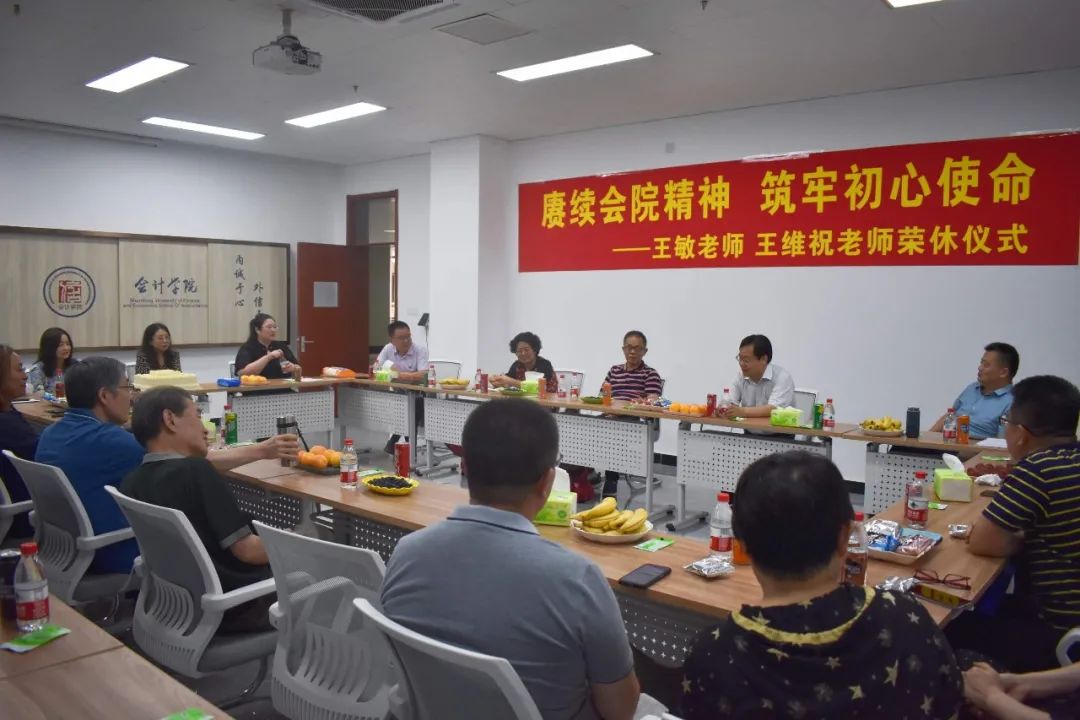 两位退休教师满怀真情发言,他们表示将时刻不忘入党誓言,坚决拥护党的领导,为党的事业奉献终身,同时还深情回顾了在山财大会院工作期间的美好时光,表达了对学院举办此次退休仪式的感谢,表达了他们对教育事业的热爱,以及对学校、同事们的感激、眷恋和不舍之情。他们为学校快速发展和取得的辉煌成就感到骄傲、自豪,并表示在乐享退休生活的同时,将一如既往地关注学校发展,继续为学校发展发挥余热。
