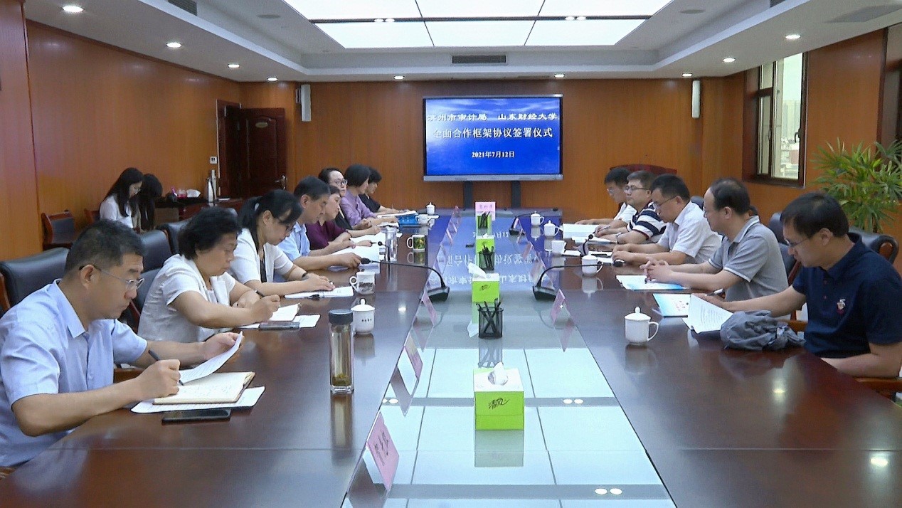 7月12日,我院与滨州市审计局、滨州市内部审计师协会全面合作框架协议签约仪式在滨州市审计局举行。我院党委书记邵文涛,副院长王守海,滨州市审计局党组书记、局长扈献民,滨州市审计局副局长赵君,滨州市经济责任审计联席会议办公室主任郭杰,滨州市内部审计师协会会长崔艳霞,副会长傅玉兰等出席签约揭牌仪式并参加座谈。全面合作签约及实践教学基地揭牌仪式赵君副局长主持,邵文涛书记、扈献民局长、崔艳霞会长分别致词并为市审计局、市内部审计师协会“内部审计实践教学基地”揭牌,王守海分别与郭杰副局长、傅玉兰副会长代表双方进行签约。
