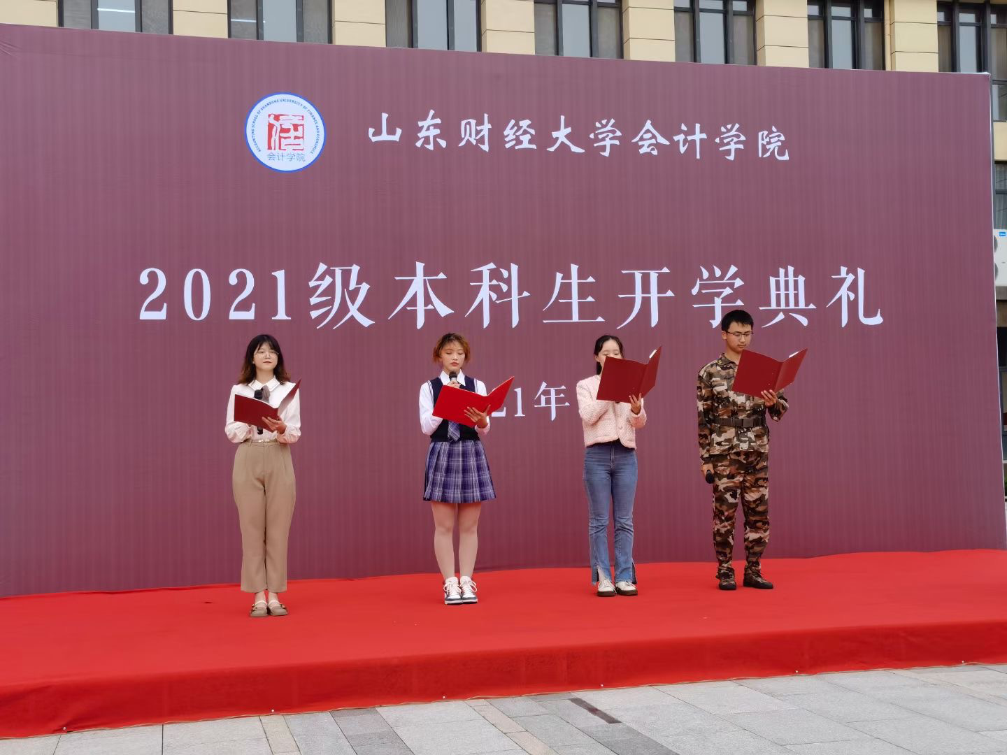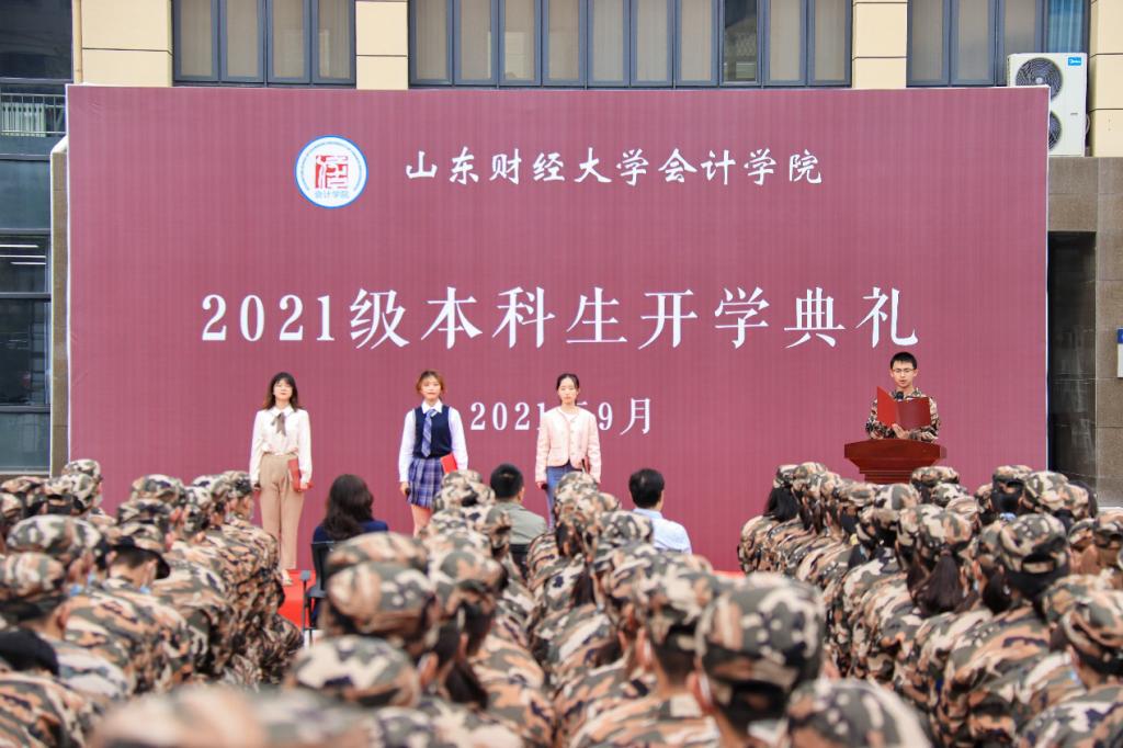 9月27日下午,bat365官方官网2021级本科生开学典礼在圣井校区隆重举行。bat365官方官网院长王爱国、党委书记邵文涛、党委副书记付亚、党委副书记钟毓卓、财务会计系主任王斌、团委书记于苗、就业办主任史岩、学工办主任赵鸿雁和2021级新生辅导员张沫、王美春、张慧娟出席,高年级学生代表和2021级全体本科生参加活动。