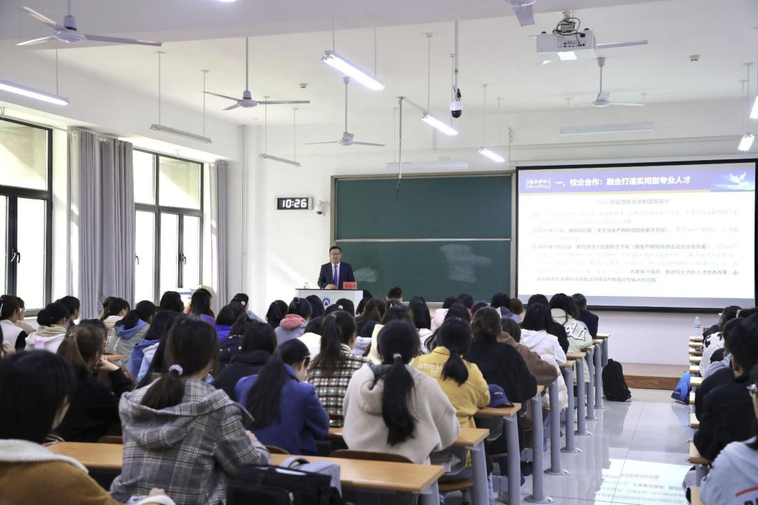 郝先经首先感谢学校和学院给予信永中和会计事务所济南分部长期合作的机会,对同学们来到山财大bat365官方官网学习会计学这门专业表示祝贺。他围绕“专业成就未来“主题,分别从”校企合作“、”行业回眸”、“风雨兼程”、“未来寄语”四个方面与同学进行了深入探讨。