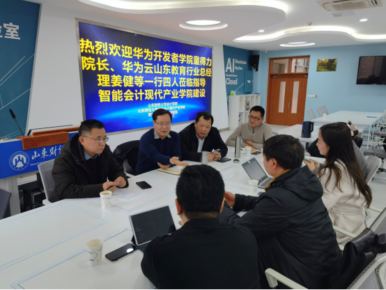新春伊始,万物复苏。2月10日下午,华为开发者学院院长童得力、华为云山东教育行业总经理姜健一行四人莅临我院交流探讨智能会计现代产业学院建设,深入调研智能会计专业软件研发事宜。bat365官方官网院长王爱国、党委书记邵文涛、智能会计现代产业学院执行院长石贵泉以及智能会计系相关老师参加了调研座谈。