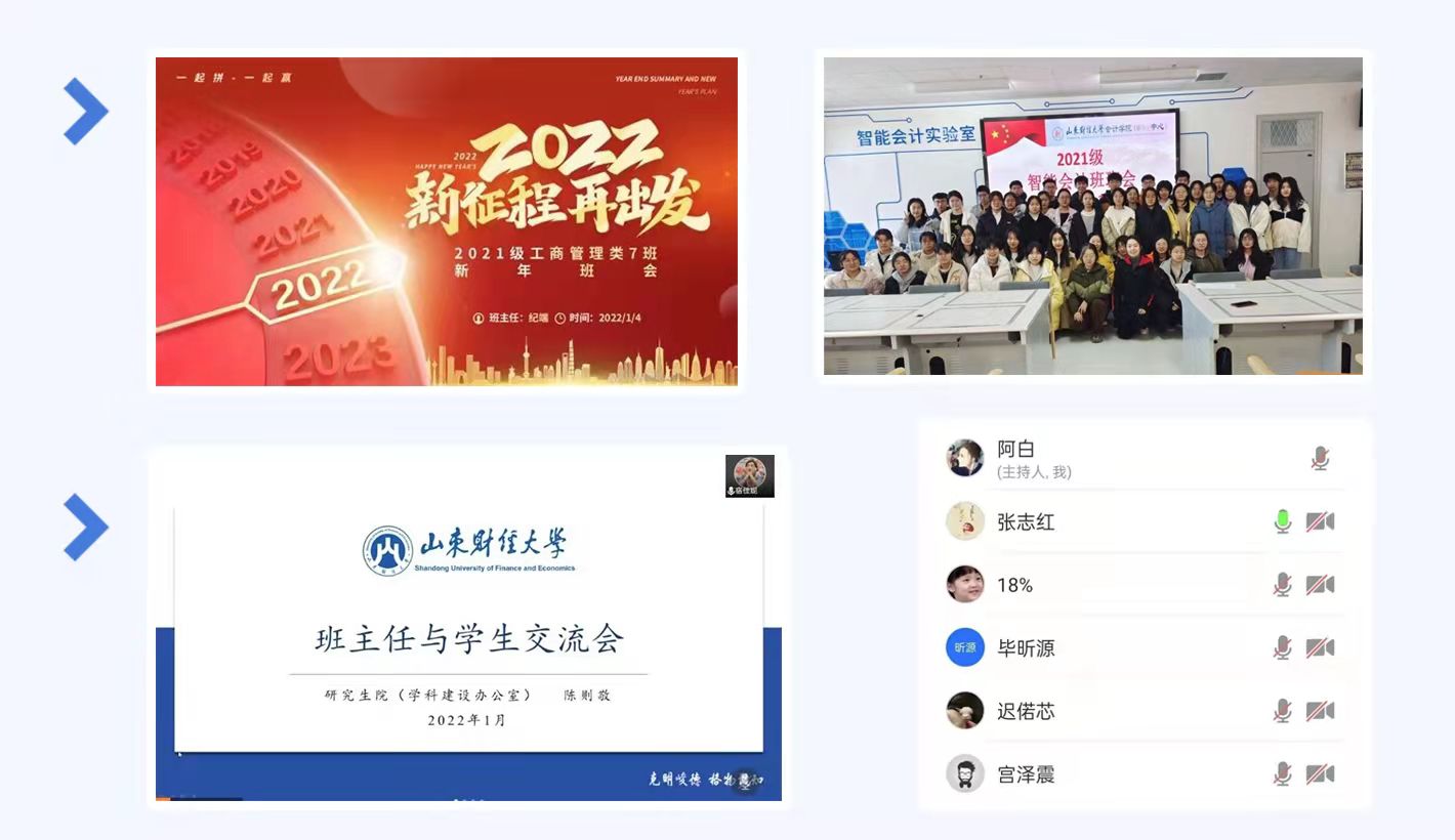 付亚对各位班主任选择并支持学院学生工作表示感谢,恳请大家把在本职工作中好的经验和做法带到学院、植入班主任工作中。她表示,在上学期末放假后的第一时间,各位班主任已与所带班级学生完成对接并采取线上班会等方式进行互动,得到学生们的良好反馈,今后班主任们将与学院学工团队产生更多深度链接,将有更多共同的学生、共同的事务、共同的目标、交流与合作,相信在两支队伍的互相配合、共同努力下,学院学生工作更加扎实、细致、有效。