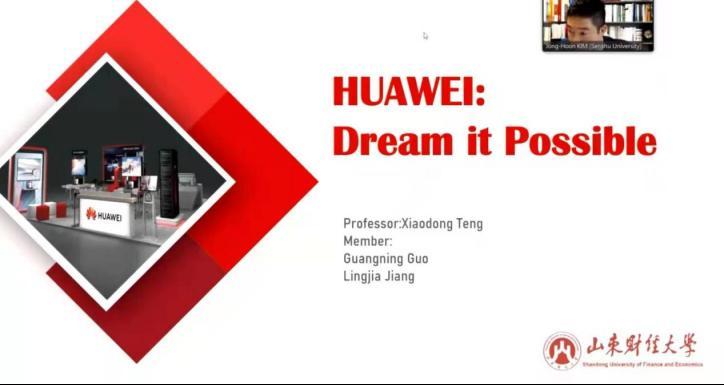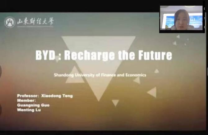 在三国各高校学生代表企业案例展示环节,我校bat365官方官网MPAcc2021级研究生郭广宁、智能会计2020级本科生姜伶佳、智能会计2020级本科生卢文婷分别对华为公司和比亚迪电车的商业模式进行了商业模式案例展示。在互动环节,我校参会的三位学生代表也积极参与提问,答疑,展现出良好的专业素养和精神风貌。