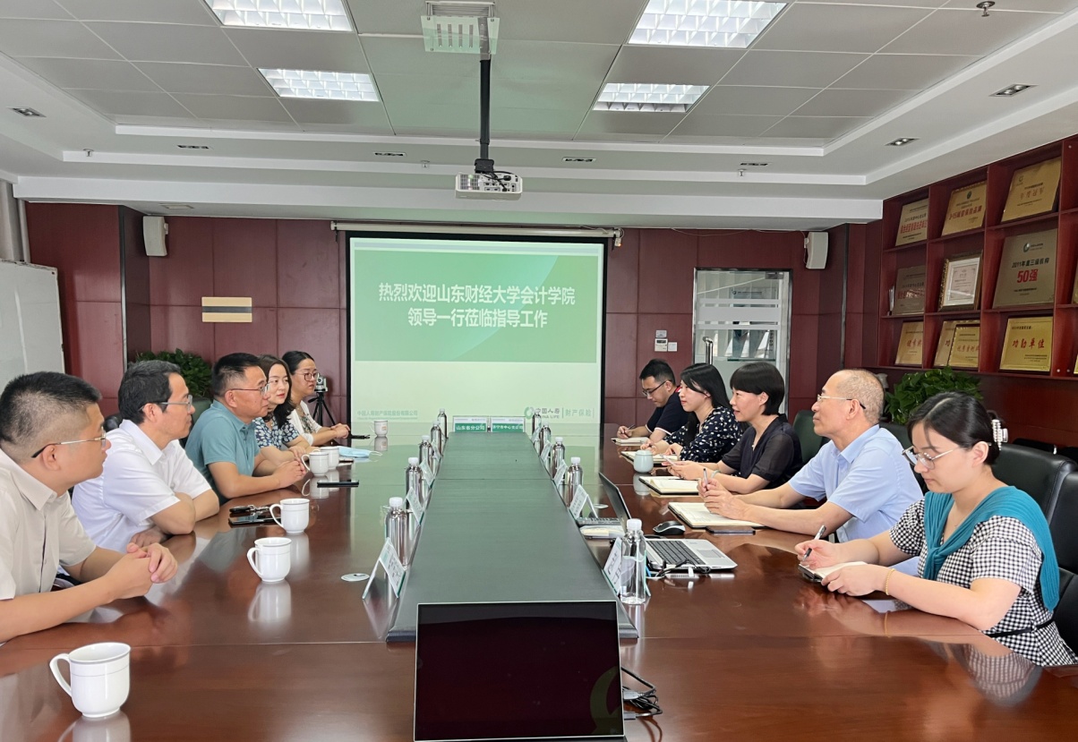 随后,来到中国人寿财产保险股份有限公司济宁市中心支公司,与人寿财险济宁市中支总经理辛颖等校友就学院就业情况、公司人才需求情况、财务数字化转型等相关方面进行了详细调研和深入交流。
