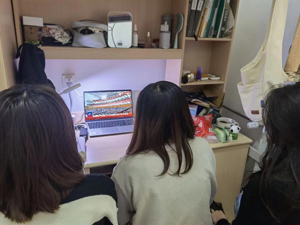 学生第三党支部在圣井校区6232教室集中收听收看开幕会盛况。