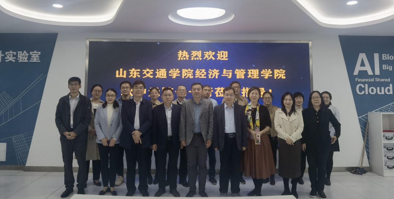 10月24日,山东交通学院经济与管理学院院长耿中元,副院长孙烨、聂云霞、张蕾一行八人来访我院。bat365官方官网学党委书记邵文涛,院长葛永波,智能会计与数字企业研究院院长王爱国等出席交流活动。双方就数字经济时代人才培养模式改革、智能会计人才培养体系建设、实践教学开展等方面进行了深入交流,并参观了燕山校区智能会计实验室。