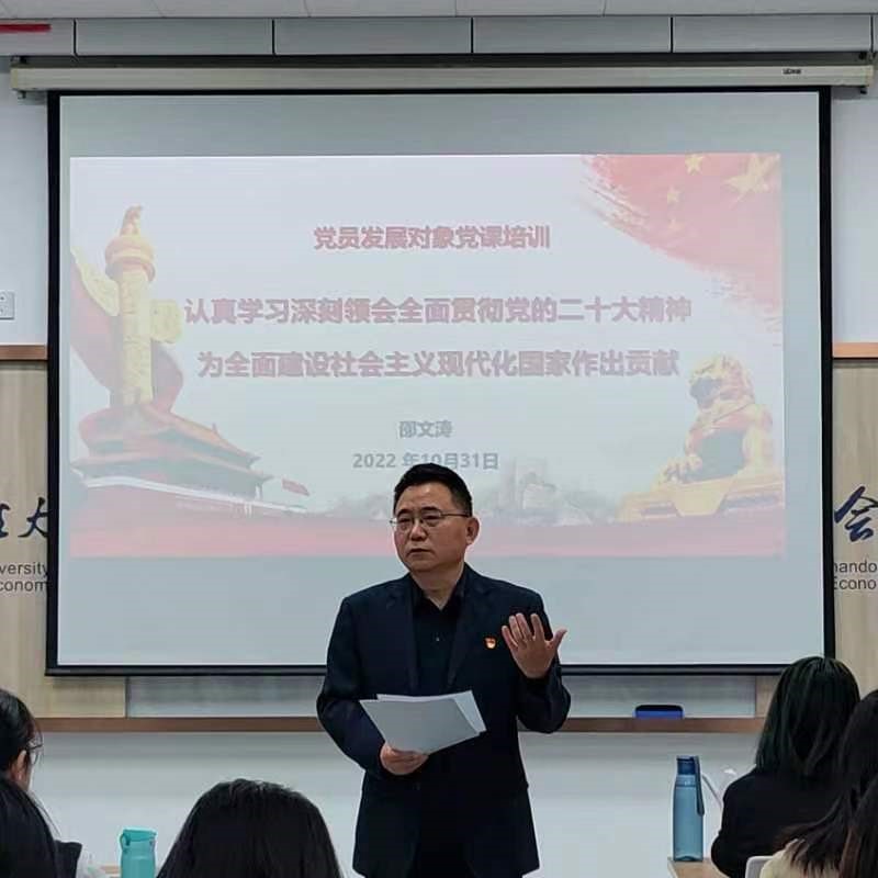 为全面学习贯彻落实党的二十大精神,进一步保证党员发展质量,提高发展对象的政治素质和理论水平,2022年10月31日上午,bat365官方官网党委于逸夫楼305教室组织了第二十四期发展对象党课集中培训班,学院党委书记邵文涛出席开班仪式并讲话,开班仪式由学院党委副书记郑大伟主持。
