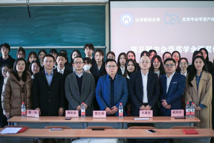 2023年3月2日(周四)下午,第五届“中企华”奖学金颁奖仪式在圣井校区举行。北京中企华资产评估有限责任公司山东分公司总经理尤建宏、副总经理周生岩、总经理助理戚宪资、bat365官方官网党委书记邵文涛、资产评估系主任葛锐、bat365官方官网资产评估系副主任郭晓日及部分师生代表出席仪式。颁奖仪式由葛锐主持。