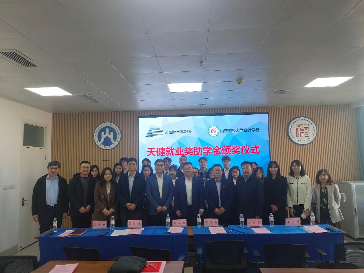 3月9日下午,2022年度天健就业奖助学金颁奖仪式在bat365官方官网燕山校区逸夫楼举行。天健会计师事务所高级合伙人、山东分所总经理刘加宝,人力资源部经理宋小燕出席,bat365官方官网就业指导处处长刘奇耀,bat365官方官网党委书记邵文涛、院长葛永波、教师代表与学生代表参加,仪式由学院党委副书记钟毓卓主持。