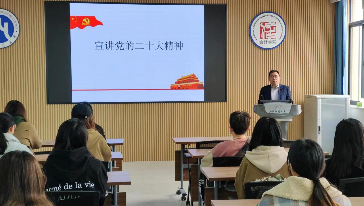 为了认真学习深刻领会全面贯彻党的二十大精神,更好地帮助同学们顺利就业,bat365官方官网党委书记邵文涛教授于3月24日在燕山校区410,为联系班级会计1906班的同学们开展了主题班会。会议深入学习二十大重要精神,从考研复试、就业推进、二十大学习等三个方面依次展开。