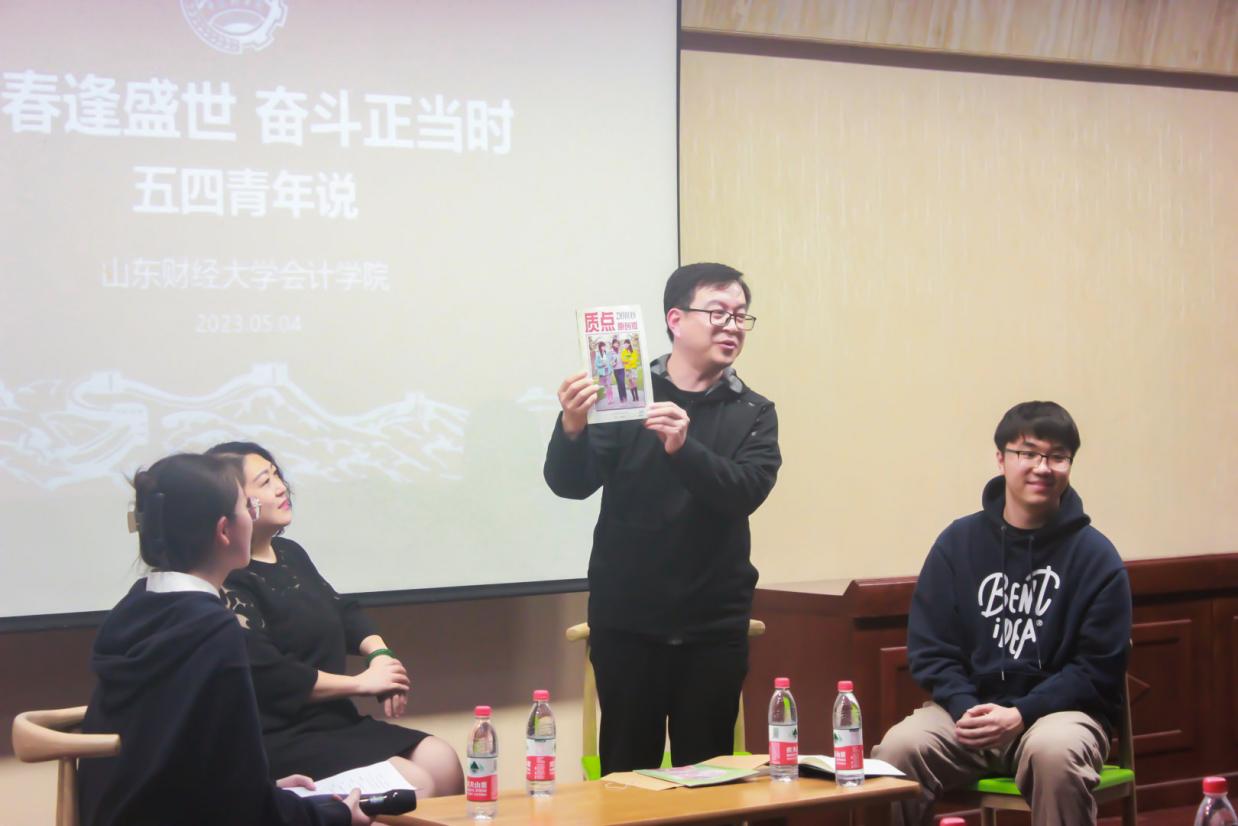 进入提问环节,同学们积极提问,三位校友细心解答。最后,李清照将两期刊物《质点》赠与bat365官方官网,为丰富学院校史图书资源增添了一份贡献。