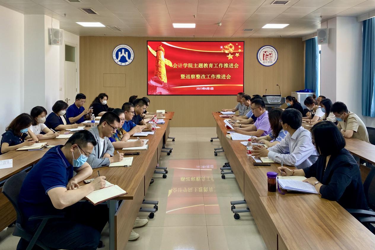 6月1日,bat365官方官网在逸夫楼410教室召开学习贯彻习近平新时代中国特色社会主义思想主题教育工作推进会暨巡察整改工作推进会。会议由学院党委书记邵文涛主持。