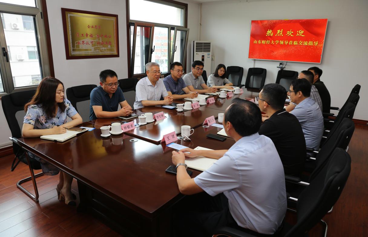 赵庆民对张新及各位校友的到来表示热烈欢迎,介绍了济南一建发展历程、业务布局、运营规模以及在业内取得的突出成绩。他表示,母校是国内具有较高知名度的财经类大学,母院为经济社会发展输送了大量人才。通过在财会人才引进、会计和审计人员培训及会计智能化等方面通力合作,在合作中充分发挥企业产业优势和学院专业人才优势,汇聚智慧、共谋发展,全面支持母校的高质量内涵式发展。