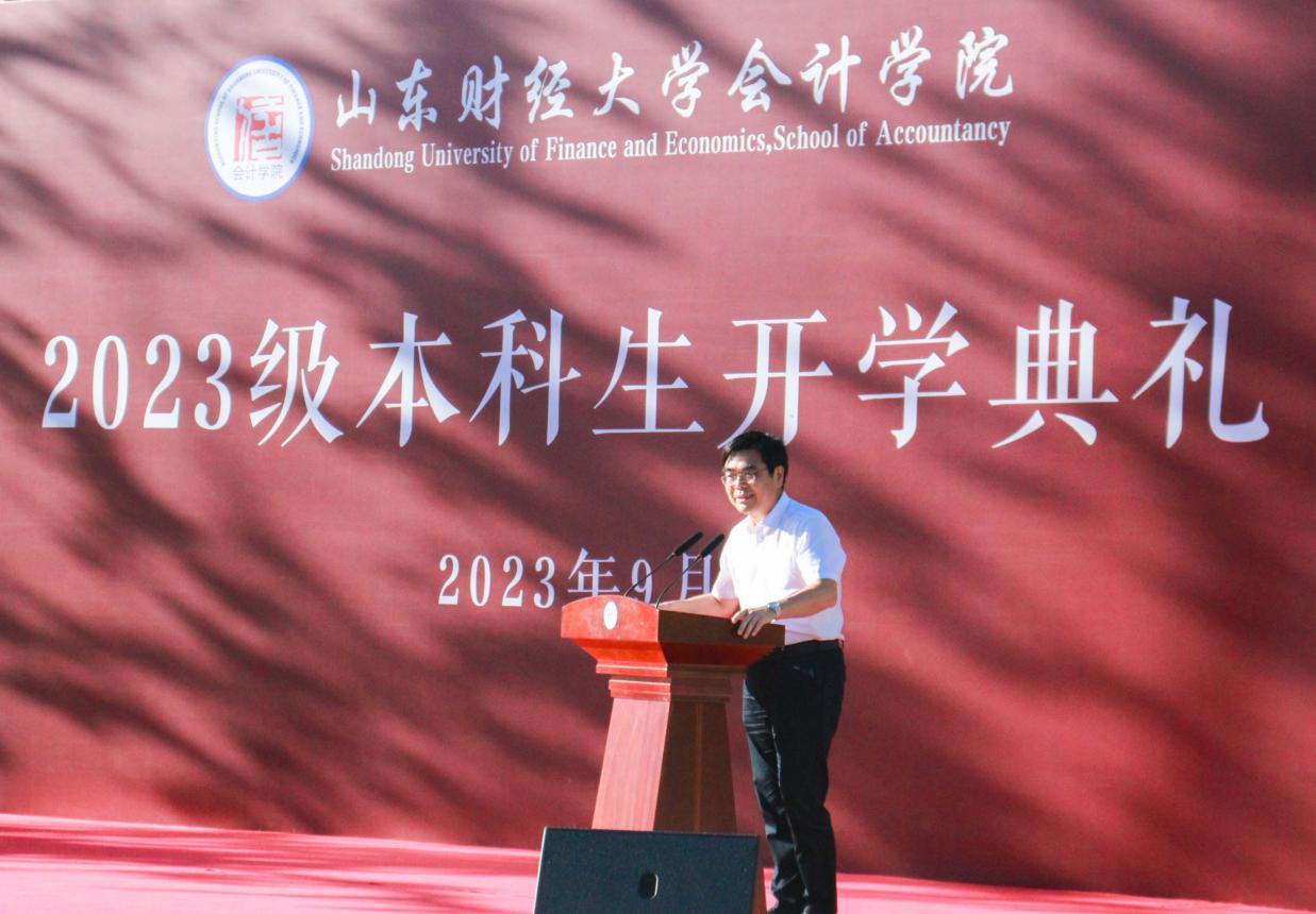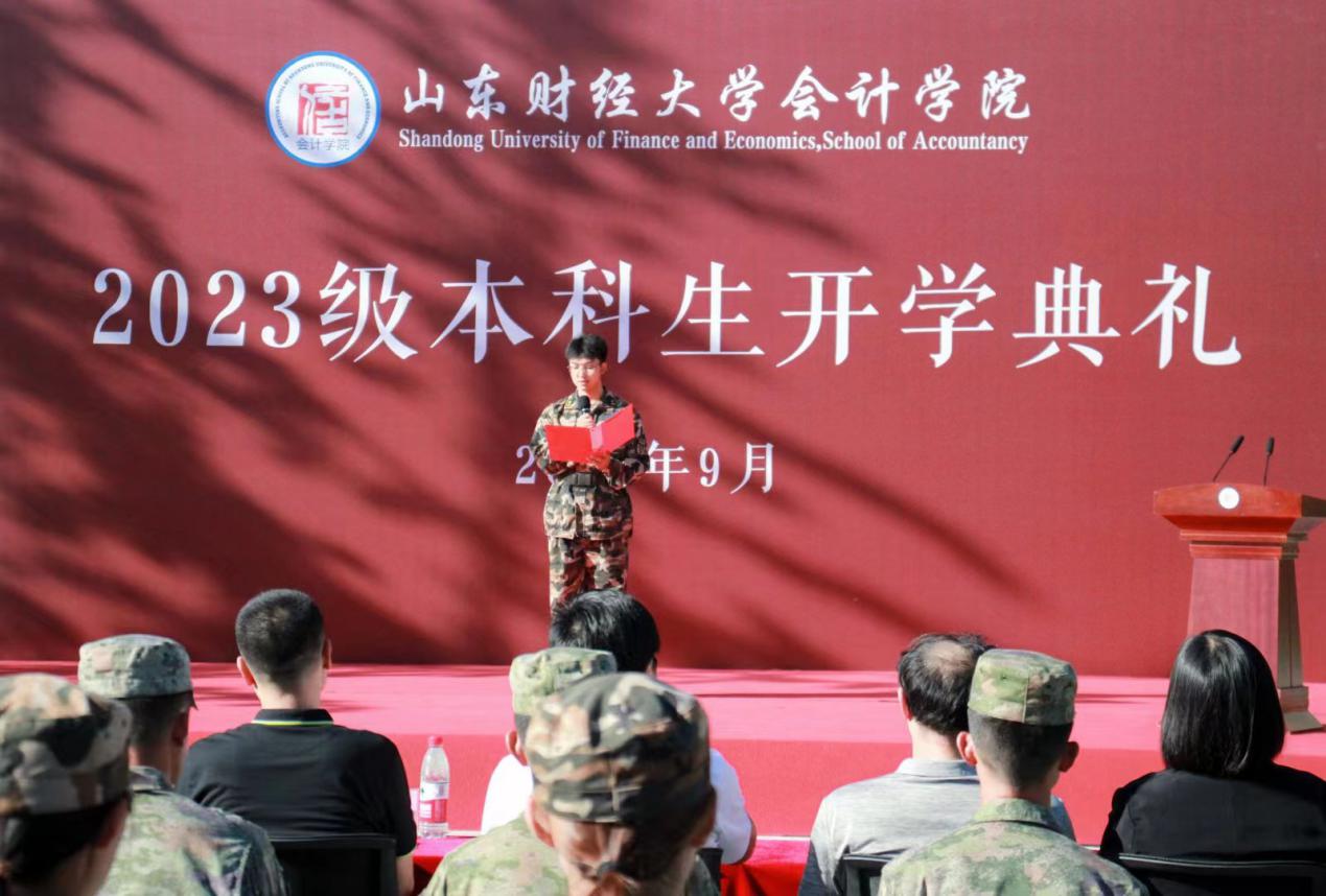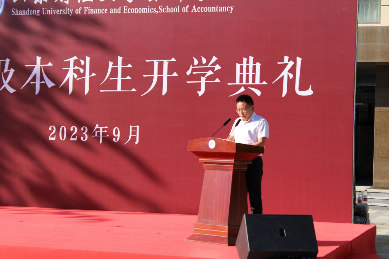 9月21日下午,bat365官方官网在圣井校区召开2023级本科生开学典礼。99级校友浪潮集团财务有限公司总经理王冰,bat365官方官网党委书记邵文涛,院长葛永波,副书记郑大伟,副院长王守海、吴大新、刘惠萍,审计系教师国赟,学院党委委员兼学工办主任赵鸿雁,团委书记张慧娟,党委组织员张沫,就业办主任孙菁,辅导员王文伟、曹婧,以及bat365官方官网军训团一营的各位教官出席典礼。典礼由学院党委副书记钟毓卓主持。