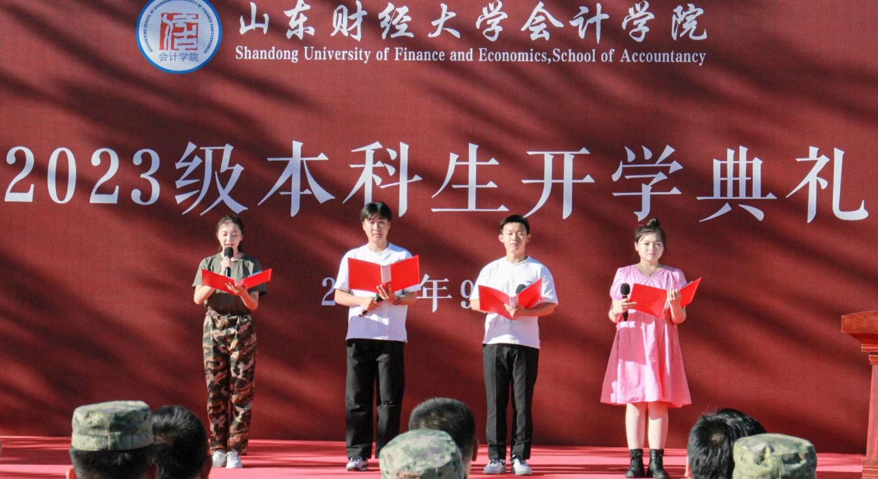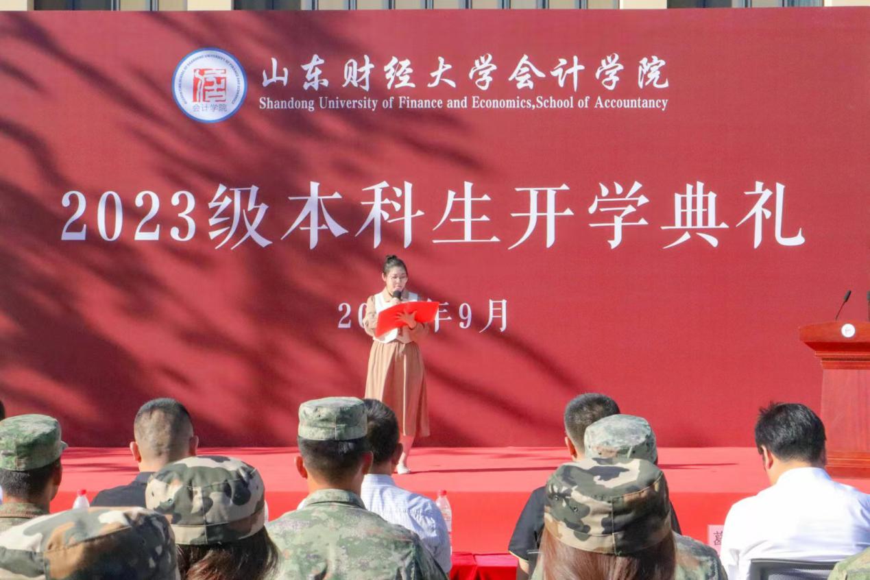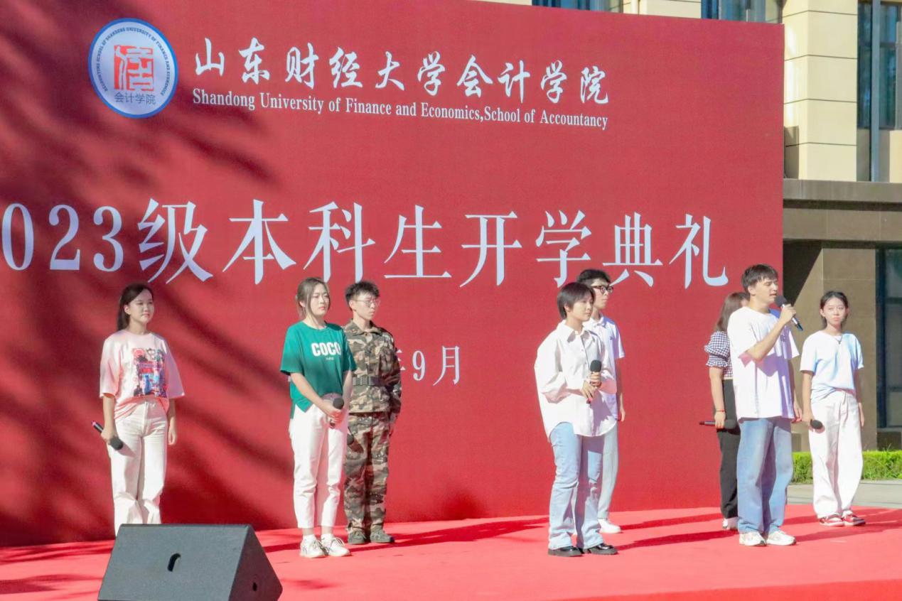 9月21日下午,bat365官方官网在圣井校区召开2023级本科生开学典礼。99级校友浪潮集团财务有限公司总经理王冰,bat365官方官网党委书记邵文涛,院长葛永波,副书记郑大伟,副院长王守海、吴大新、刘惠萍,审计系教师国赟,学院党委委员兼学工办主任赵鸿雁,团委书记张慧娟,党委组织员张沫,就业办主任孙菁,辅导员王文伟、曹婧,以及bat365官方官网军训团一营的各位教官出席典礼。典礼由学院党委副书记钟毓卓主持。