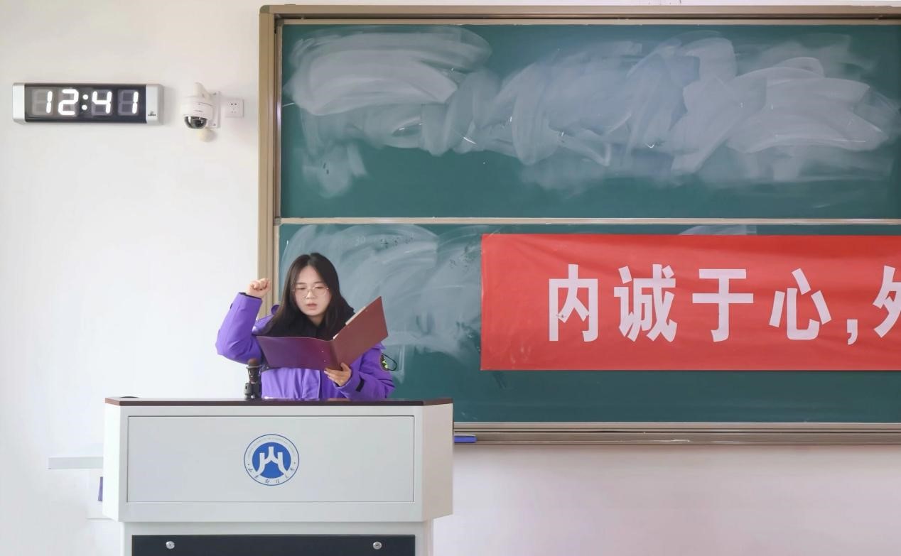 其次,2023级学生代表王奕婷同学发言。她提出诚信应考不仅仅是一种道德要求,更是一种法律责任,是每一位同学应当坚守的底线。她还向同学们发出倡议:树立正确的考试观念和诚信意识,注重平时的积累和坚持到底的精神,以实际行动践行诚信应考的重要价值!