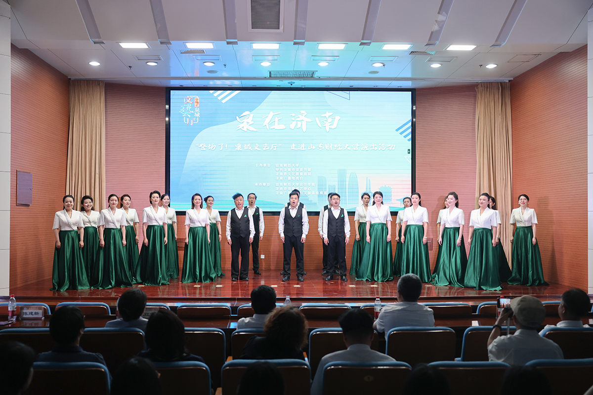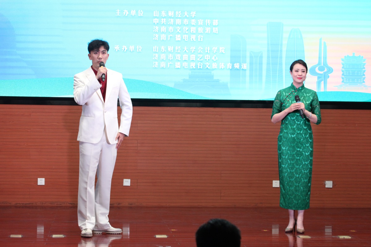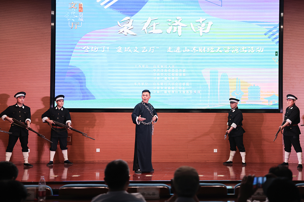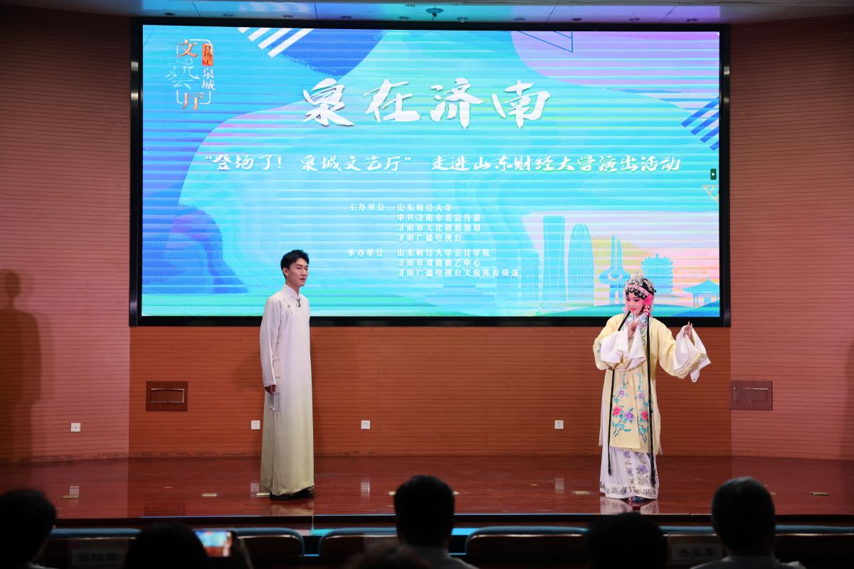 菁菁校园六月相约,高雅艺术精彩纷呈。6月7日下午,由bat365官方官网、中共济南市委宣传部、济南市文化和旅游局、济南广播电视台主办,我校bat365官方官网、济南市戏曲曲艺中心、济南广播电视台文旅体育频道承办的 “‘泉’在济南——登场了!泉城文艺厅”走进我校,在燕山校区图书馆第一报告厅举办专场演出,让师生们近距离领略了高雅艺术的无穷魅力。现场高潮迭起,精彩纷呈,震撼心灵。