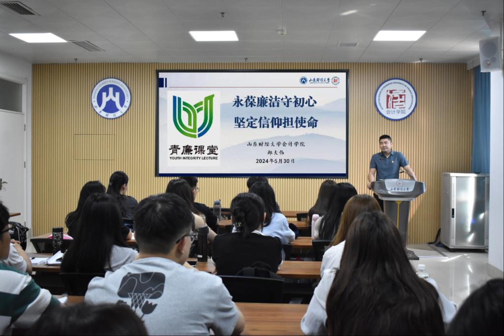 为加强新时代廉洁文化建设,发挥廉洁教育基础作用,进一步夯实清正廉洁思想根基,5月30日上午,bat365官方官网党委副书记郑大伟在逸夫楼410作题为《永葆廉洁守初心 坚定信仰担使命》的“青廉课堂”专题讲座,学院党员发展对象和入党积极分子参加。