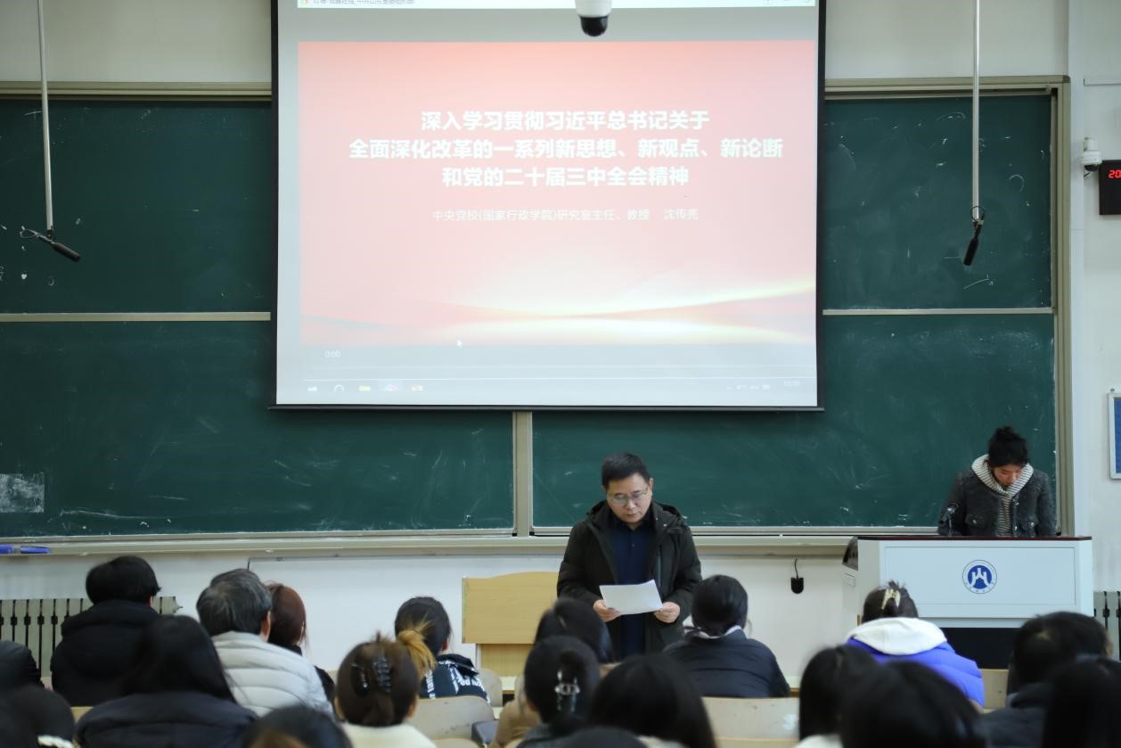 随后,邵文涛传达学校《关于开展科级及以下干部、党员学习贯彻党的二十届三中全会精神培训的通知》精神,按照《bat365官方官网关于开展学习贯彻党的二十届三中全会精神培训工作方案》,邵文涛带领科级及以下干部、党员深入学习习近平总书记关于全面深化改革的一系列新思想、新观点、新论断和党的二十届三中全会精神,并集体观看了教学视频。他强调要深刻领会党的二十届三中全会精神,把握习近平法治思想的核心要义、丰富内涵和实践要求,切实把科学思想转化为法治建设的实际成效,不断应用到教学科研和日常生活中,形成学习贯彻习近平法治思想的浓厚氛围,努力推动习近平法治思想深入人心。