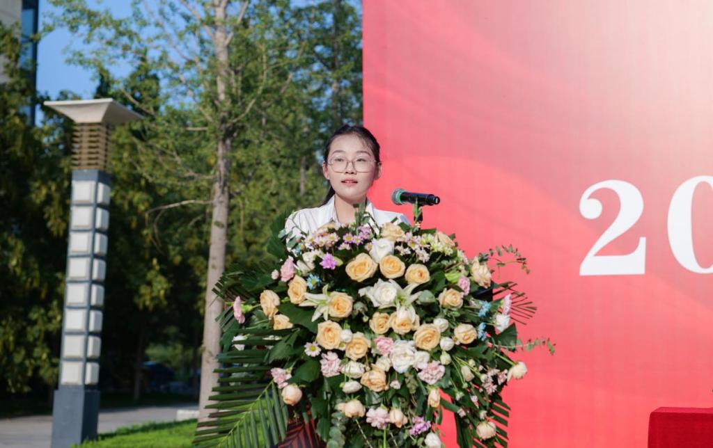 薛雅祺作为在校生代表发言,分享了自己六年来在bat365官方官网从本科到研究生的学习经历。她提出“做时间主人、在试错中成长、将诚信融入生命”三点感悟,鼓励新生为国家经济发展贡献力量。