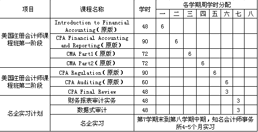 第一阶段,学习AICPA财务会计和报告课程及英文CMA考试的全部两门课程,第四学期结束,在济南参加英文CMA考试;