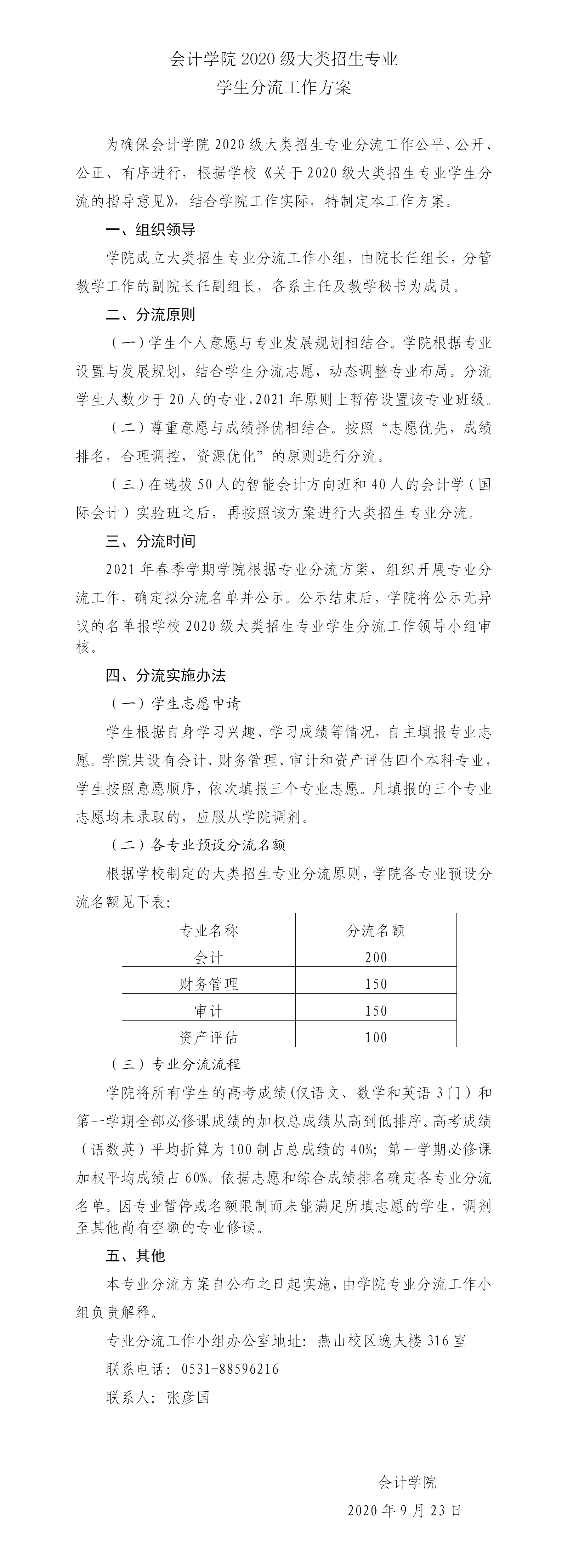 bat365官方官网2020级大类招生专业--学生分流工作方案