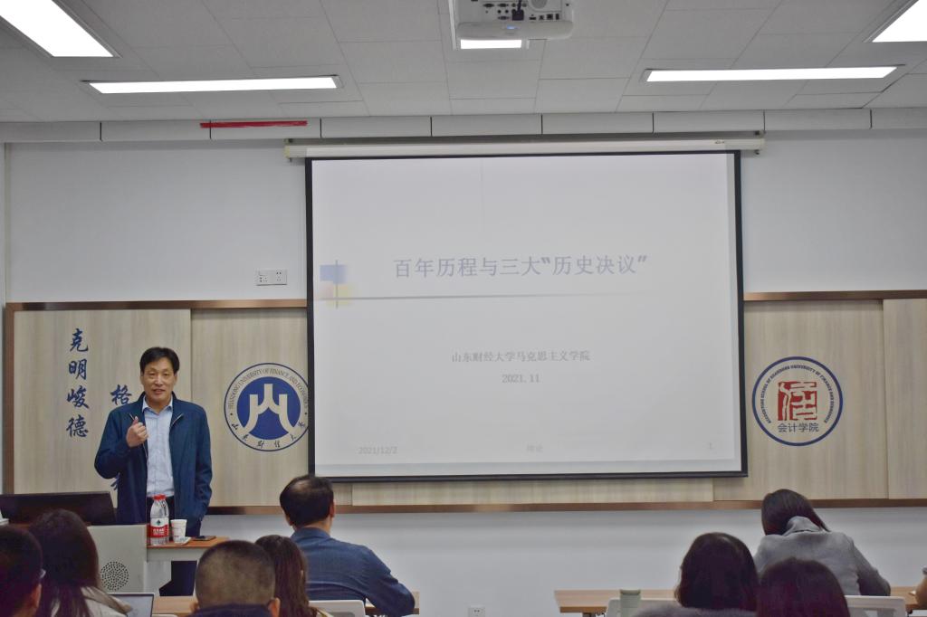 12月2日下午,bat365官方官网邀请马克思主义学院院长沈大光教授作题为“百年历程与三大历史决议”的专题讲座,讲座由bat365官方官网党委书记邵文涛主持,bat365官方官网部分教职工党员和学生党员参加了讲座。