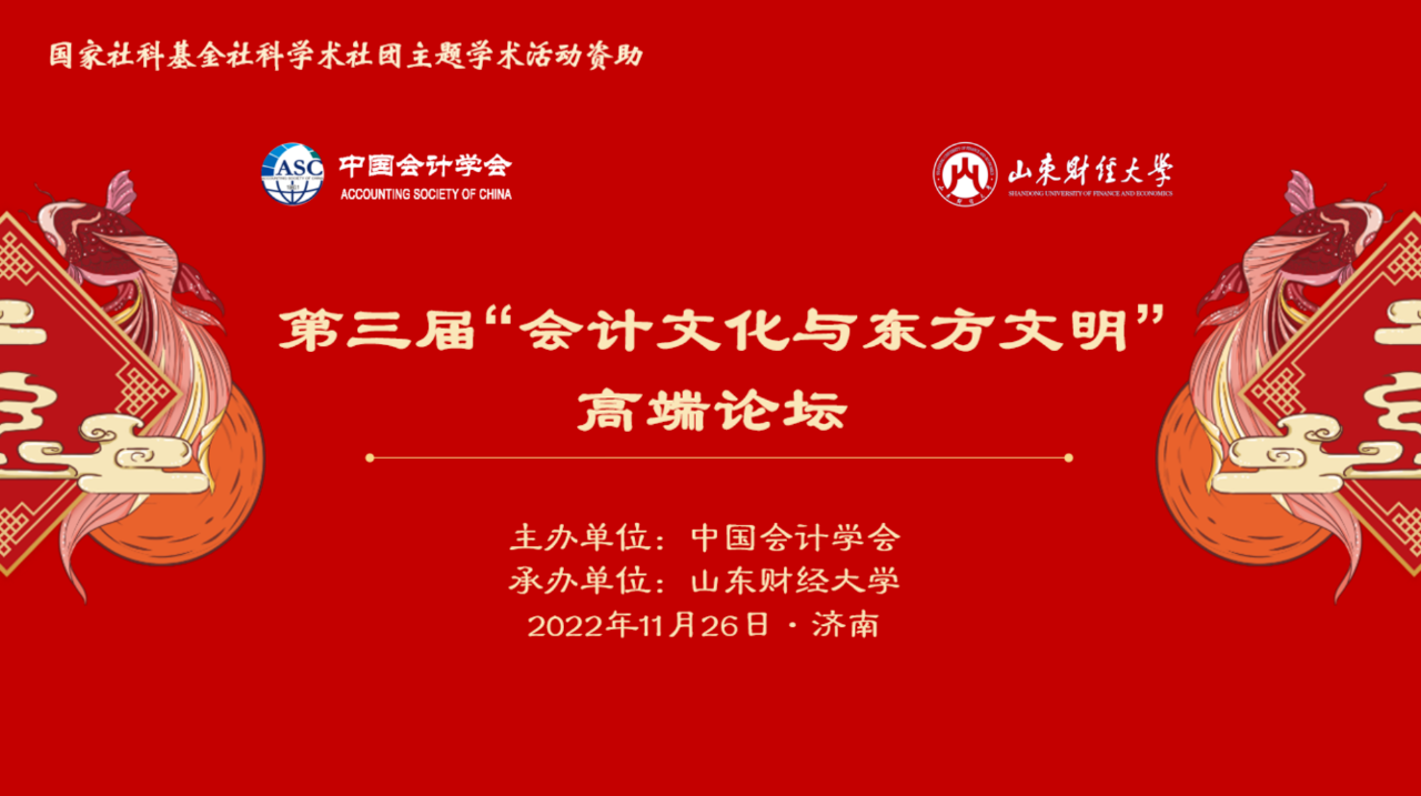 为贯彻落实党的二十大精神,促进会计文化创新繁荣,服务会计事业高质量发展,中国会计学会拟于2022年11月26日(周六)在线上举办第三届“会计文化与东方文明”高端论坛。