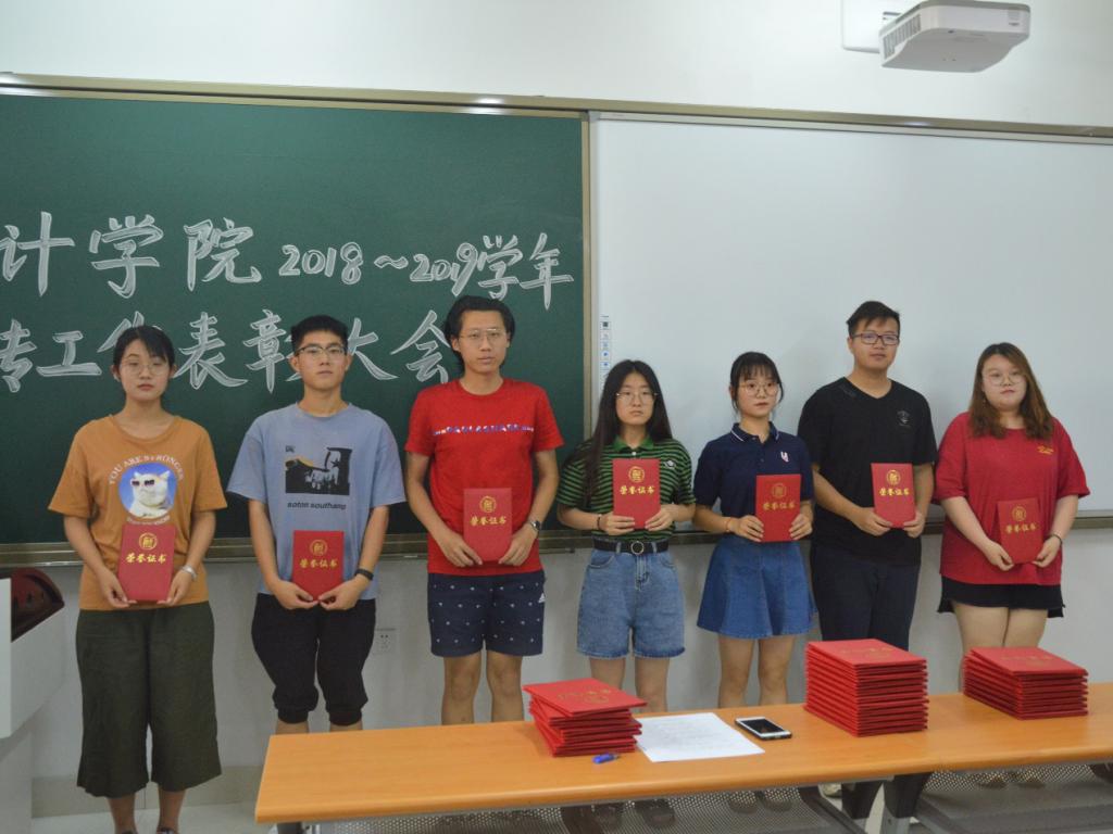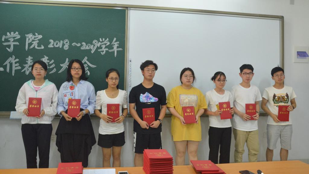 主持人宣读bat365官方官网“优秀宣传工作者”表彰名单,曹婧和孙炯明老师为获奖同学颁奖并合影留念。随后,现场还就宣传工作开展过