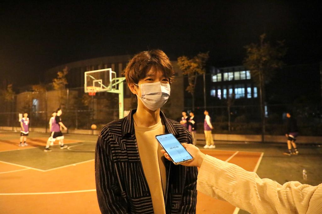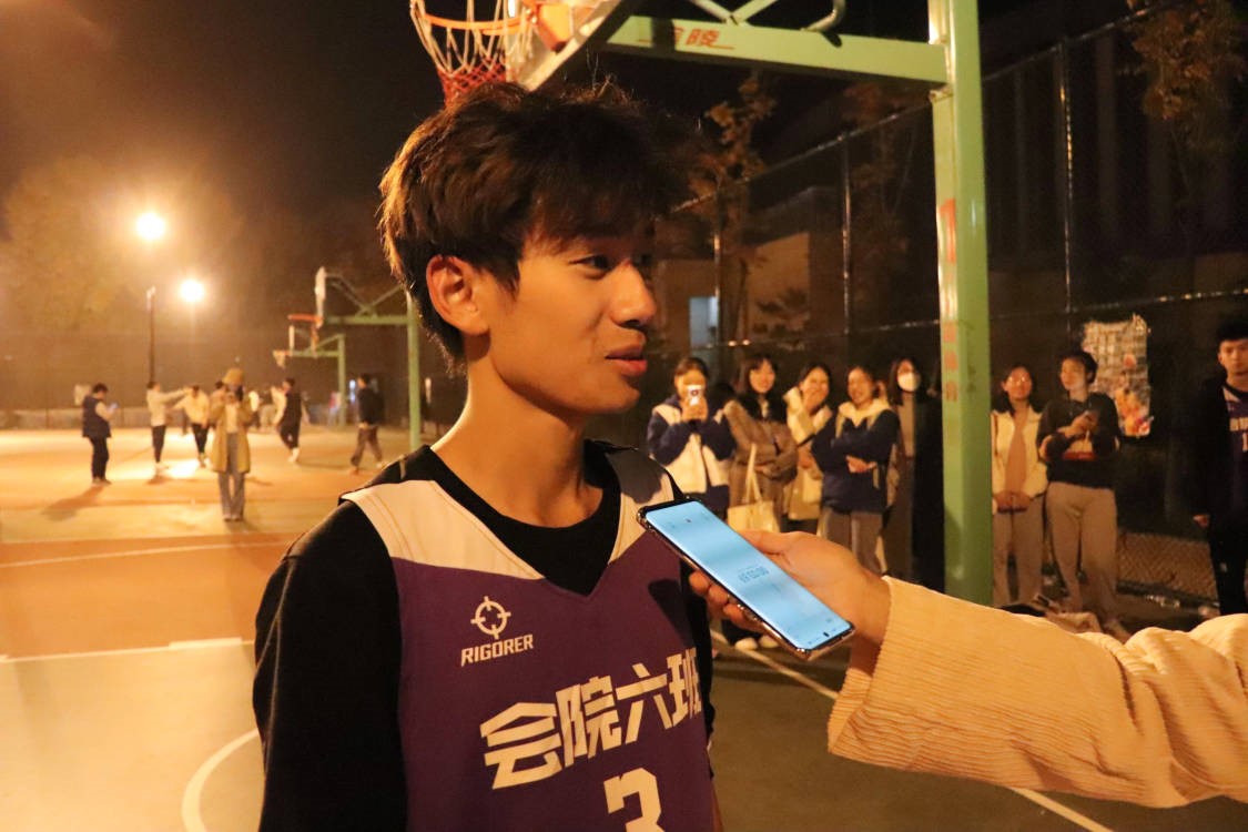 在赛前球员活动热身期间,我们采访到智能会计班的杨梓瀚同学,他表示对这场比赛充满了期待,“无论哪一只队伍胜出,他们都是货真价实的冠亚军,是通过自己的努力与汗水一步步拼搏至此,我希望他们在今晚的比赛中都能发挥出自己最好的水平!”