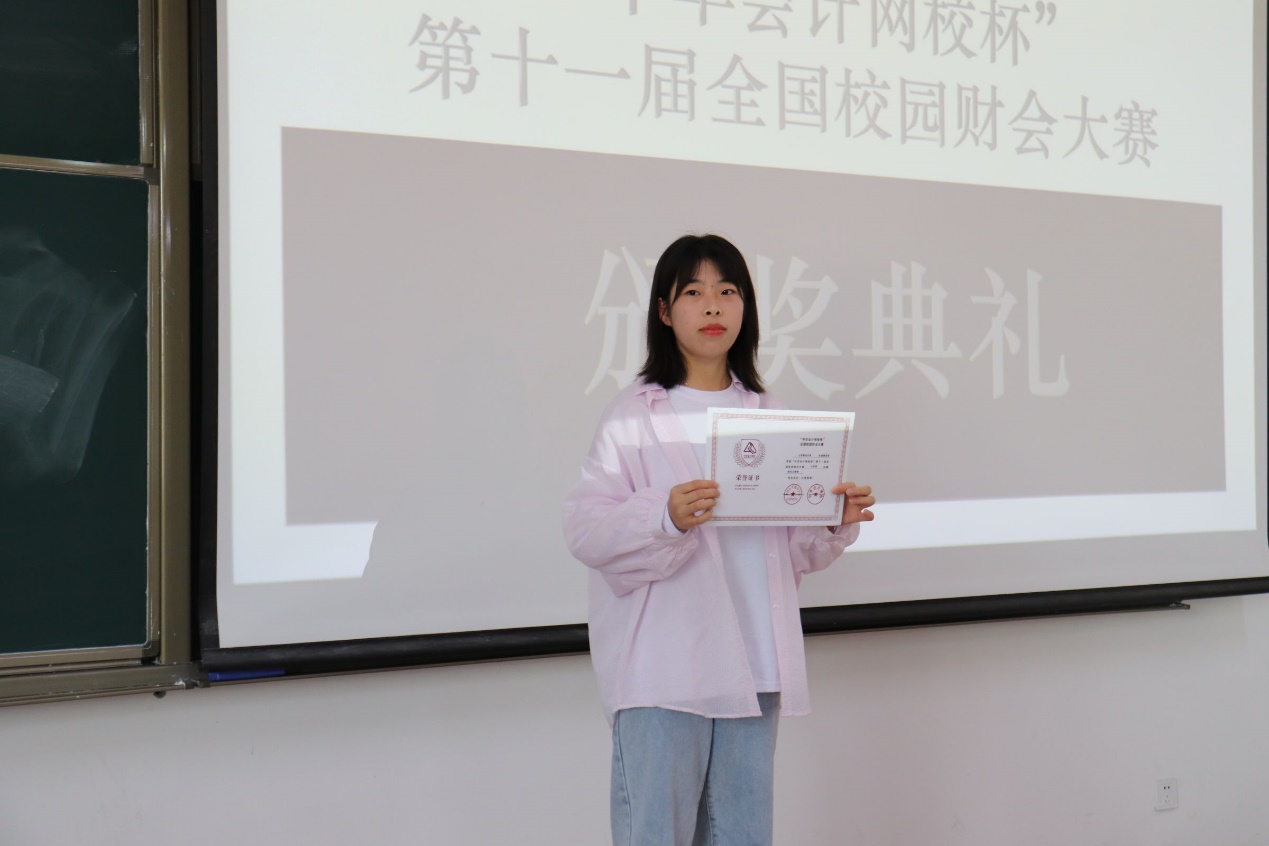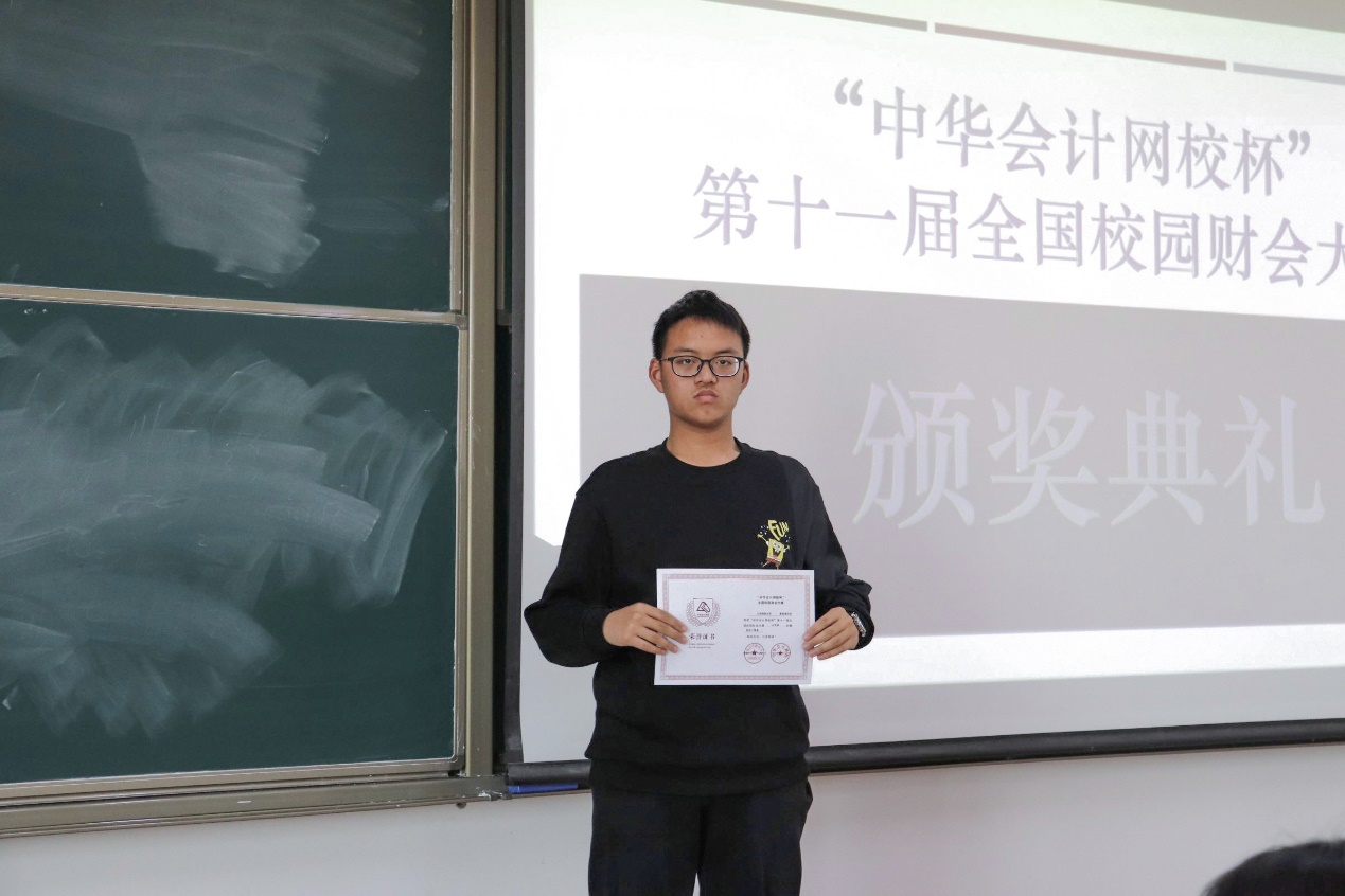 获奖同学上台领取荣誉证书,这份荣誉证书是对他们会计专业知识的肯定,也是他们以努力与汗水浇灌而成的硕果。在热烈的掌声中,本次颁奖典礼圆满结束!