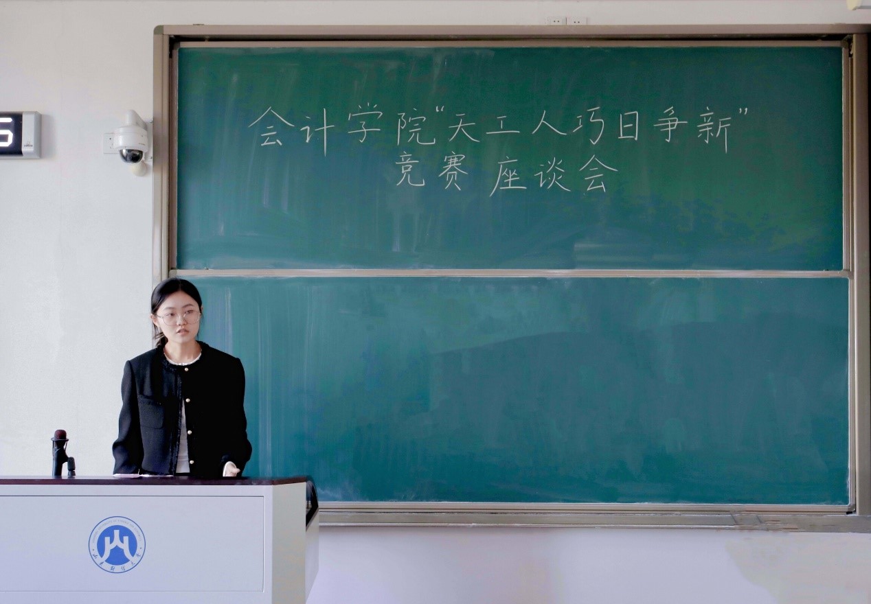 为帮助23级同学更好地了解创新创业类竞赛,“天功人巧日争新”之座谈会活动于11月9日中午在圣井校区六号教学楼举办。此次座谈会邀请到了具有丰富创赛经验的21级罗瑞蕊同学及其团队成员,为同学们分享她的竞赛心得与经验。