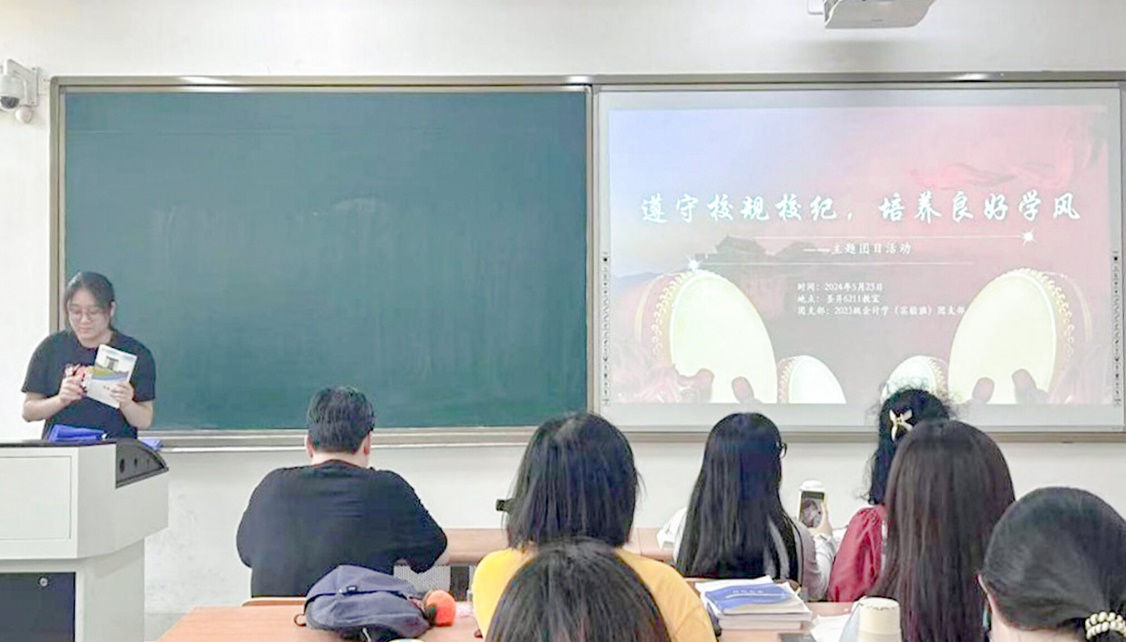 5月23日,bat365官方官网2023级会计实验班团支部召开“遵守校规校纪,培养良好学风”主题团日活动。
