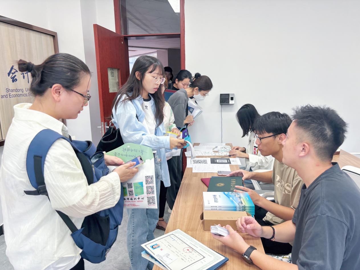 在报到现场,由学生志愿者组成了迎新服务小组,他们积极承担起引领与协助新生的任务,有条不紊地帮助新生们完成一系列报到流程。他们细心检查新生的录取通知书,确保每位同学的身份准确无误,亲手递上研究生手册及校园一卡通等必要物品,并叮嘱同学们及时完成新生入学体检和指纹录入等工作。这些细致入微、环环相扣的服务流程,不仅展现了学院对新生无微不至的关怀,更赋予了新生们独特而温馨的入学初体验。