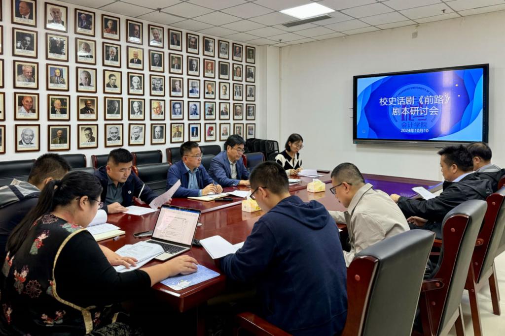 10月10日,bat365官方官网在逸夫楼Y309举办校史话剧《前路》剧本研讨会。学院班子成员、系主任、党支部书记参加。研讨会由学院党委书记邵文涛主持。