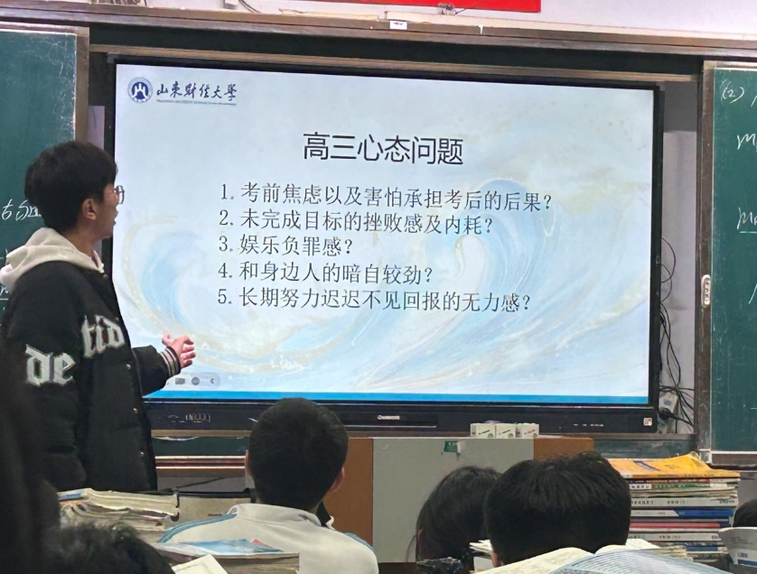 我们满怀热情,带着精心准备的宣传资料,回到了我们的母校——山东省青岛西海岸新区实验高级中学。宣讲时,我们着重介绍了本校的专业设置、招生政策和历年录取分数线等,为学弟学妹们的高考志愿填报提供了参考。宣讲后,特别设置了答疑解惑环节,问题涉及到了大学学习压力、生活适应、专业选择以及未来就业等各个方面,宣传团队耐心解答,现场气氛热烈。