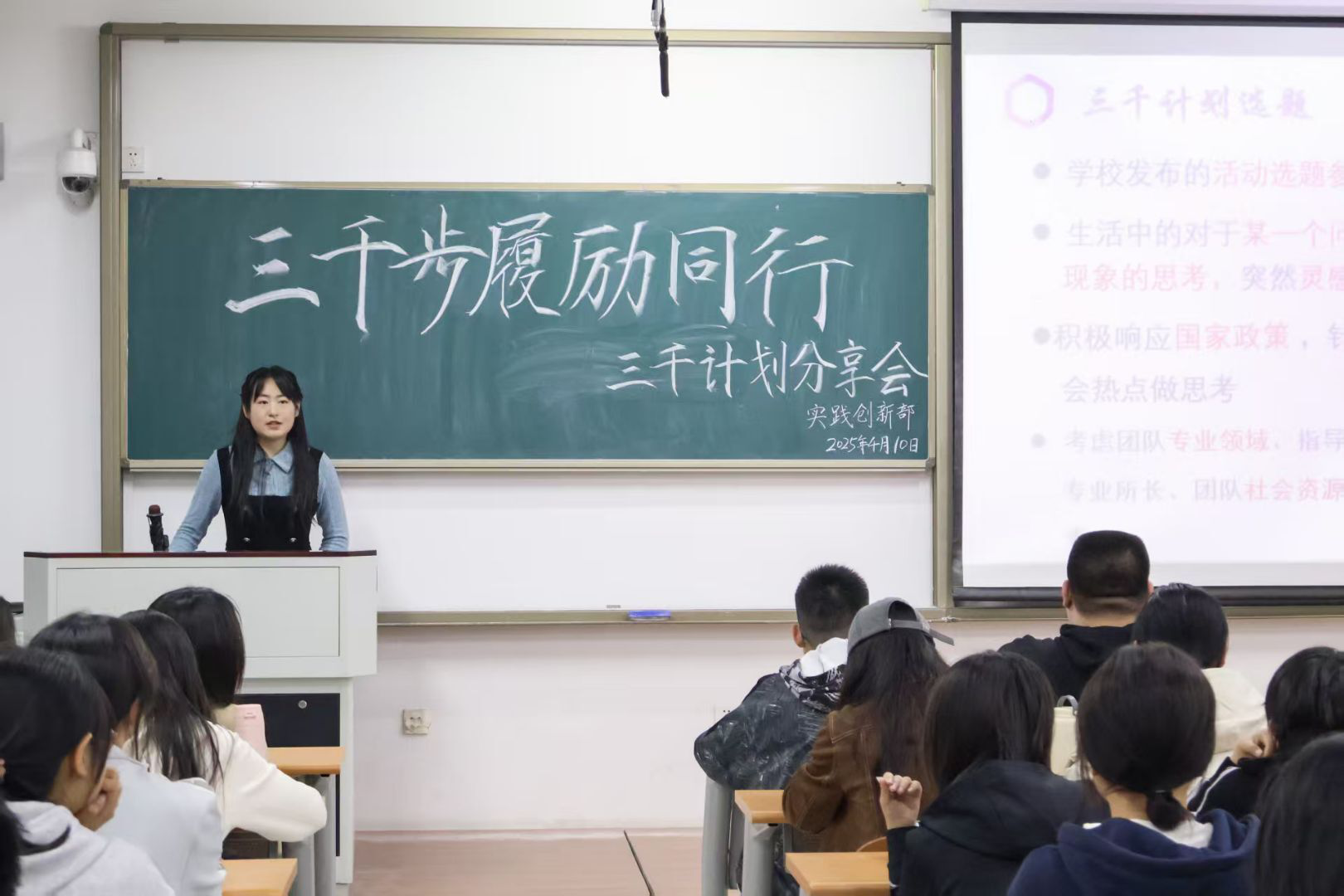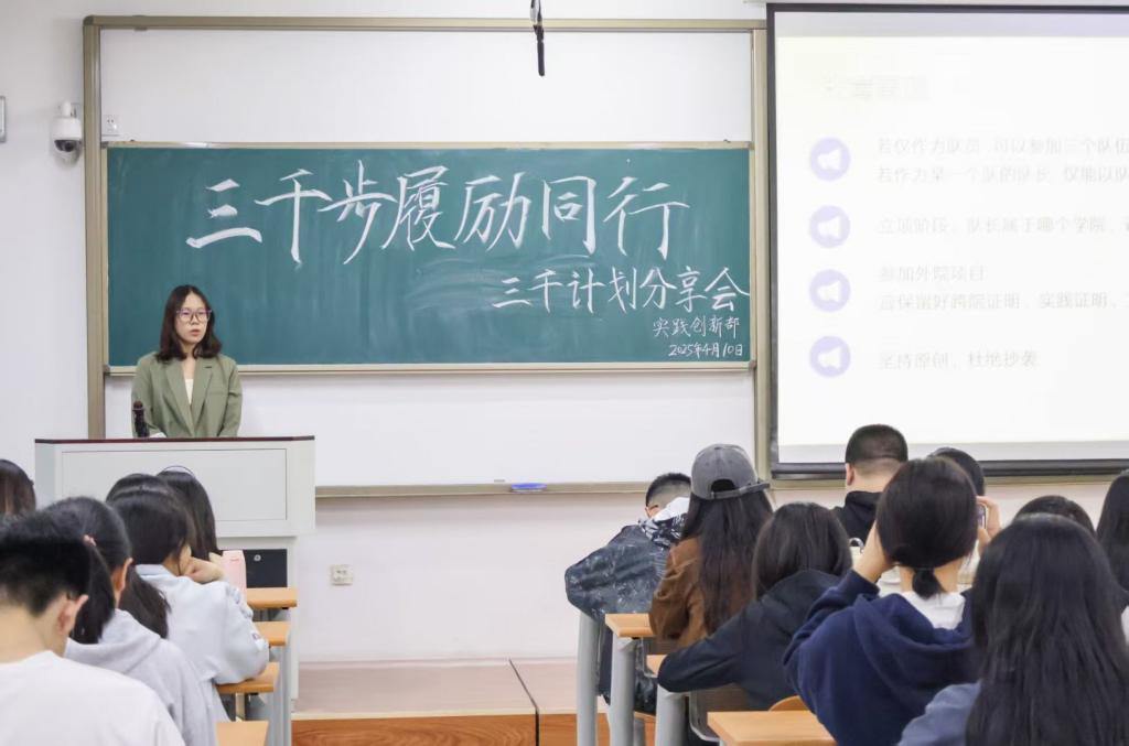 bat365官方官网学生会实践创新部秉持“我为学生办实事”理念,于4月10日、4月17日举办三千计划动员会系列活动,邀请2024年优秀团队代表分享实践经验,帮助24级同学深入了解项目运作与实践价值,做好参与准备。