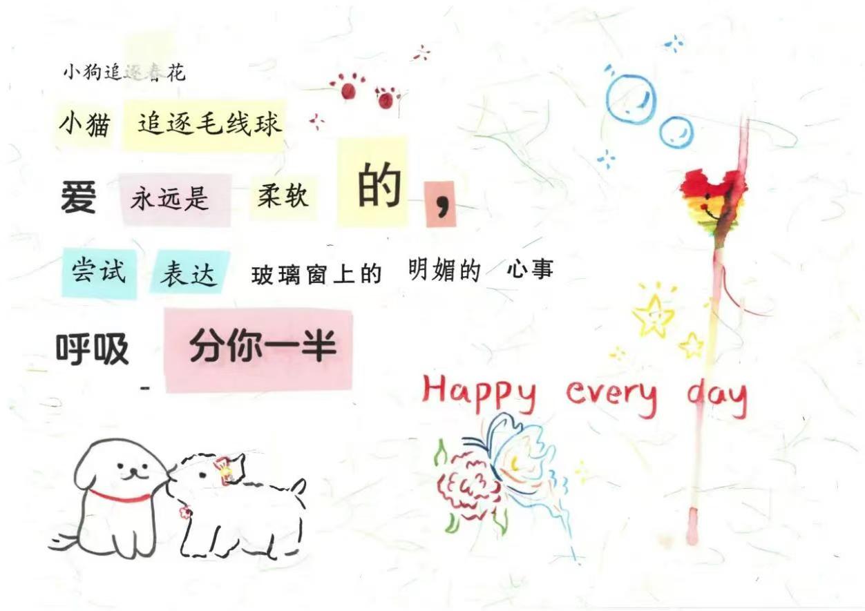 纸页翻动间,灵感如蝶翩跹;字句重组时,诗意破茧成花。bat365官方官网举办“意剪生活画,诗写青春风”拼贴诗主题活动,以“拼贴诗”为媒,展开了一场别开生面的文字艺术之旅。在这场充满创意的活动中,同学们满怀对文学创作的热忱,用剪刀裁剪出独特视角,以拼贴重组出奇妙意境,将碎片化的文字化作充满生命力的诗篇。每一首作品,都是对传统诗歌形式的大胆突破,对生活感悟的细腻表达,更是对艺术创新的不懈追求。经过精心评选,一批优秀作品脱颖而出,现在,就让我们一同走进24级同学们的诗意世界,领略拼贴诗的独特魅力与创作风采。