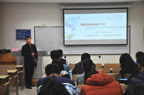 2018年11月24日上午,李海波应我院邀请,在燕山校区Y308教室作题为《新旧动能转换下的山东省产业技术预见实证进展》的专题报告会。bat365官方官网副院长、MPACC中心主任朱德胜出席并主持了报告,bat365官方官网部分老师以及非全日制硕士研究生参加了报告。李海波是山东省创新办副主任、山东软科学研究会理事长、山东省智库高端人才。